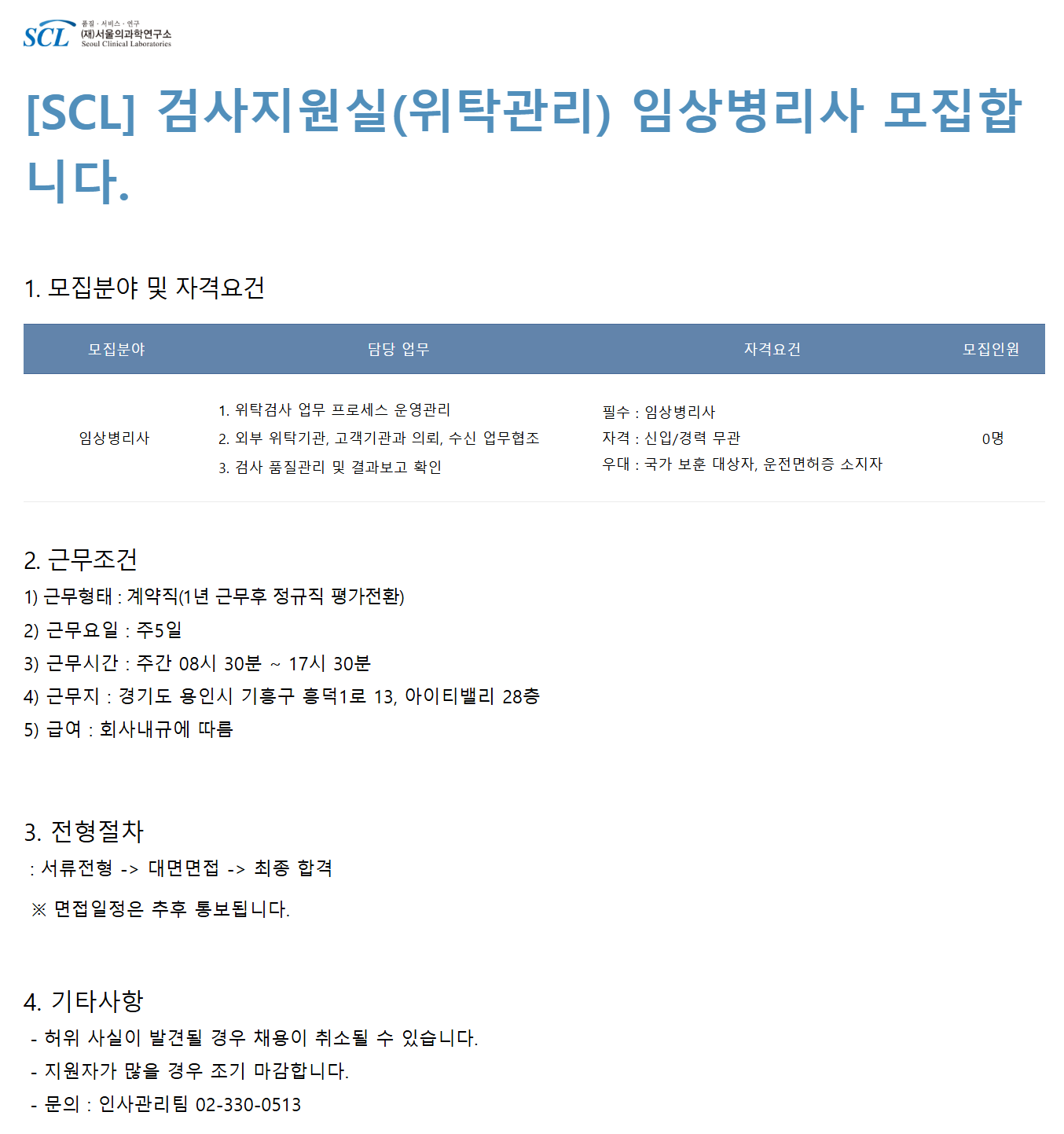 [SCL] °Ë»çÁö¿ø½Ç(À§Å¹°ü¸®) ÀÓ»óº´¸®»ç ¸ðÁýÇÕ´Ï´Ù.