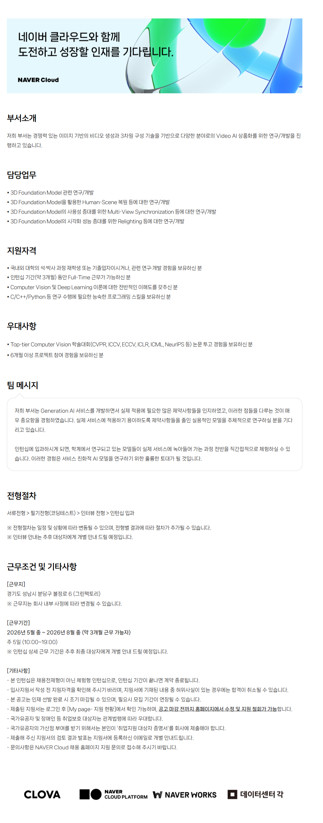 [NAVER Cloud] 3D Foundation Model ¿¬±¸/°³¹ß (üÇèÇü ÀÎÅÏ)