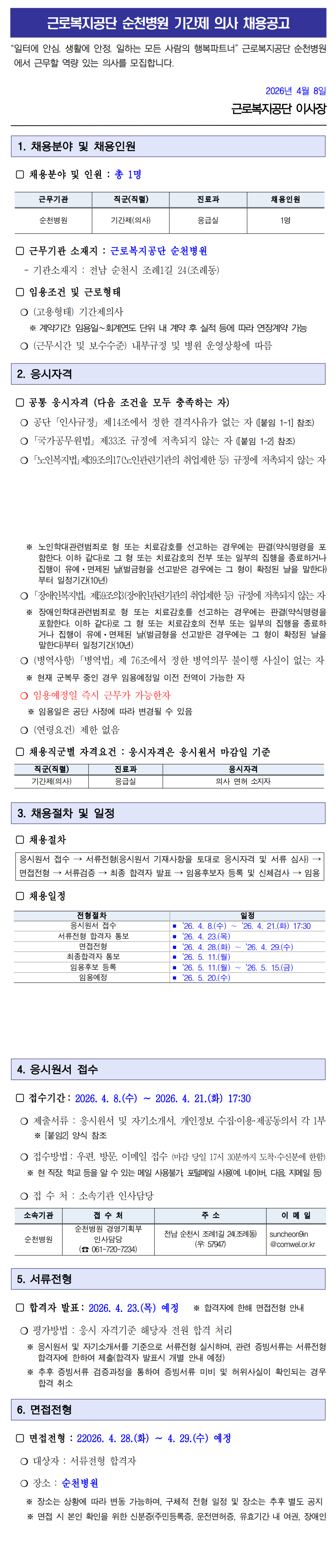 [¼øÃµº´¿ø] ±â°£Á¦ ÀÇ»ç(ÀÀ±Þ½Ç) ä¿ë °ø°í
