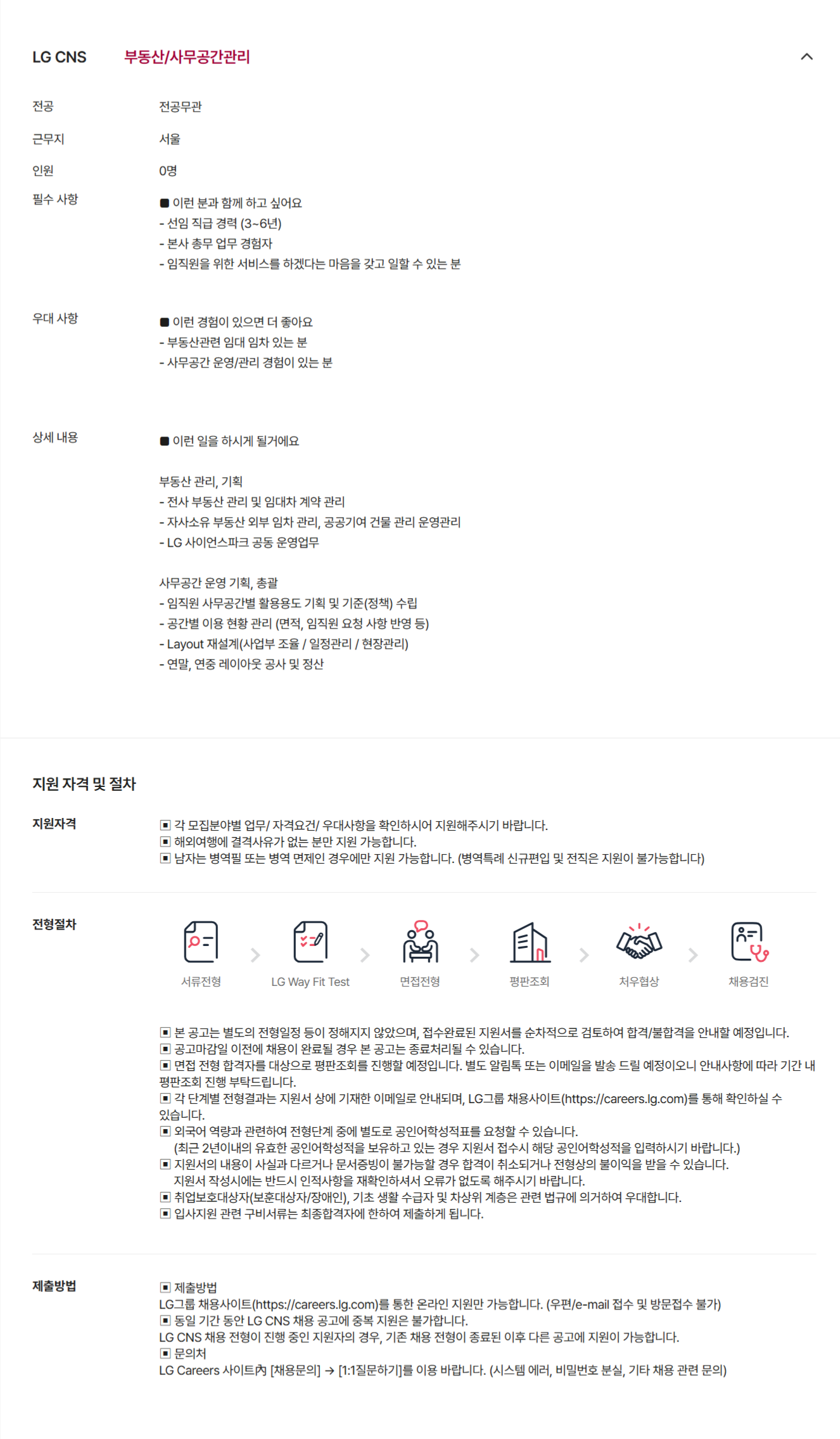 [LG CNS] °æ¿µÁö¿øÆÀ(ºÎµ¿»ê/»ç¹«°ø°£°ü¸®) ¸ðÁý(°æ·Â)