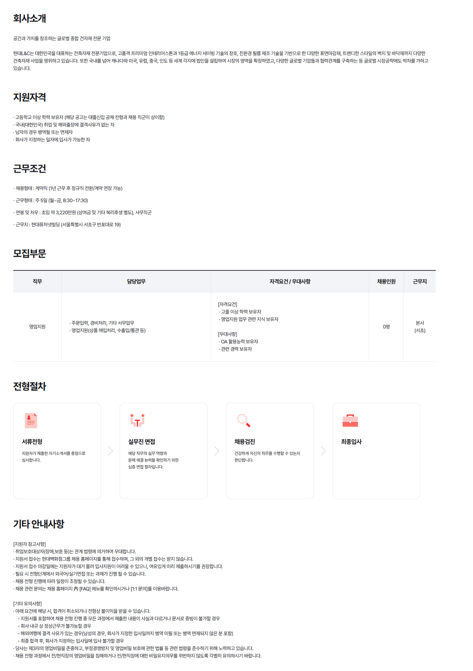 Çö´ëL&C 26³â »ó¹Ý±â »ç¹«°è¾àÁ÷ ä¿ë (¿µ¾÷Áö¿ø)