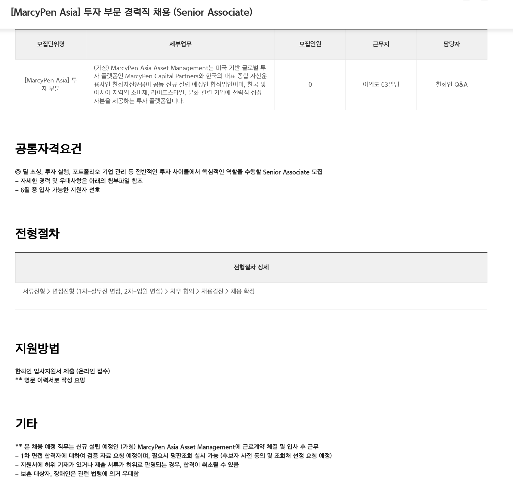 [MarcyPen Asia] ÅõÀÚ ºÎ¹® °æ·ÂÁ÷ ä¿ë (Senior Associate)