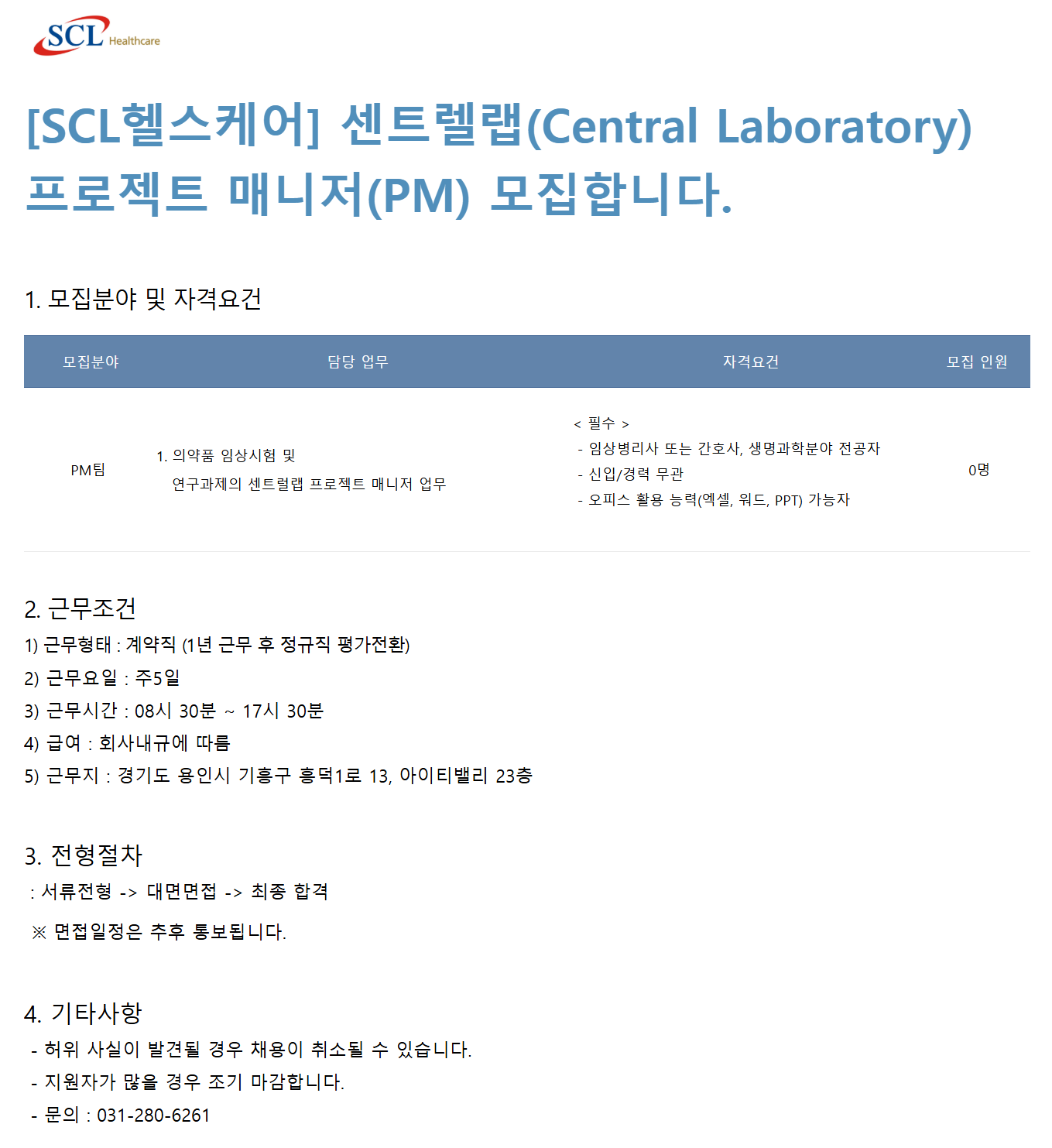 [SCLÇコÄɾî] ¼¾Æ®·¼·¦(Central Laboratory) ÇÁ·ÎÁ§Æ® ¸Å´ÏÀú(PM) ¸ðÁýÇÕ´Ï´Ù.