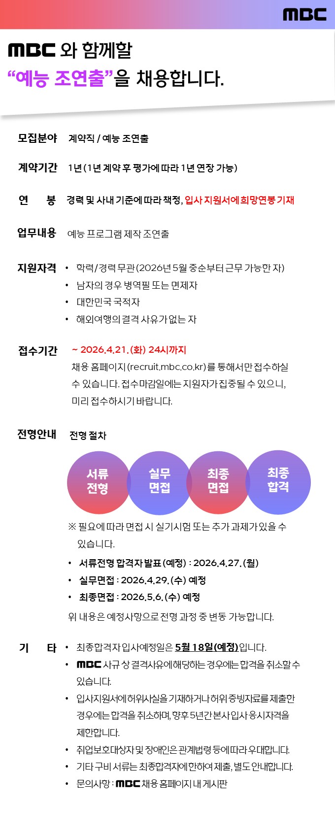 MBC ¿¹´Éº»ºÎ ¿¹´É Á¶¿¬Ãâ ¸ðÁý