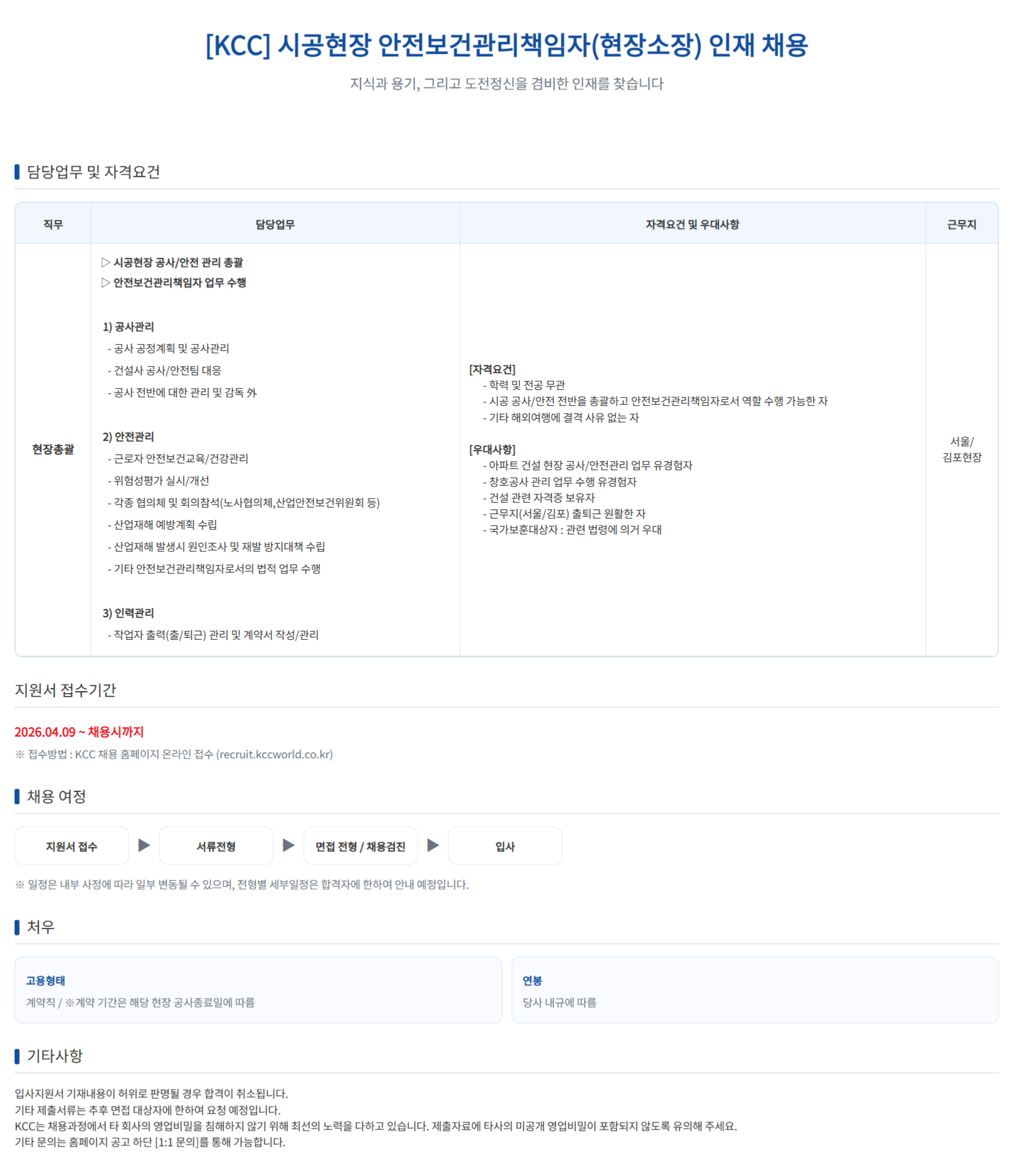 [KCC] ½Ã°øÇöÀå ¾ÈÀüº¸°Ç°ü¸®Ã¥ÀÓÀÚ(ÇöÀå¼ÒÀå) ÀÎÀç ä¿ë