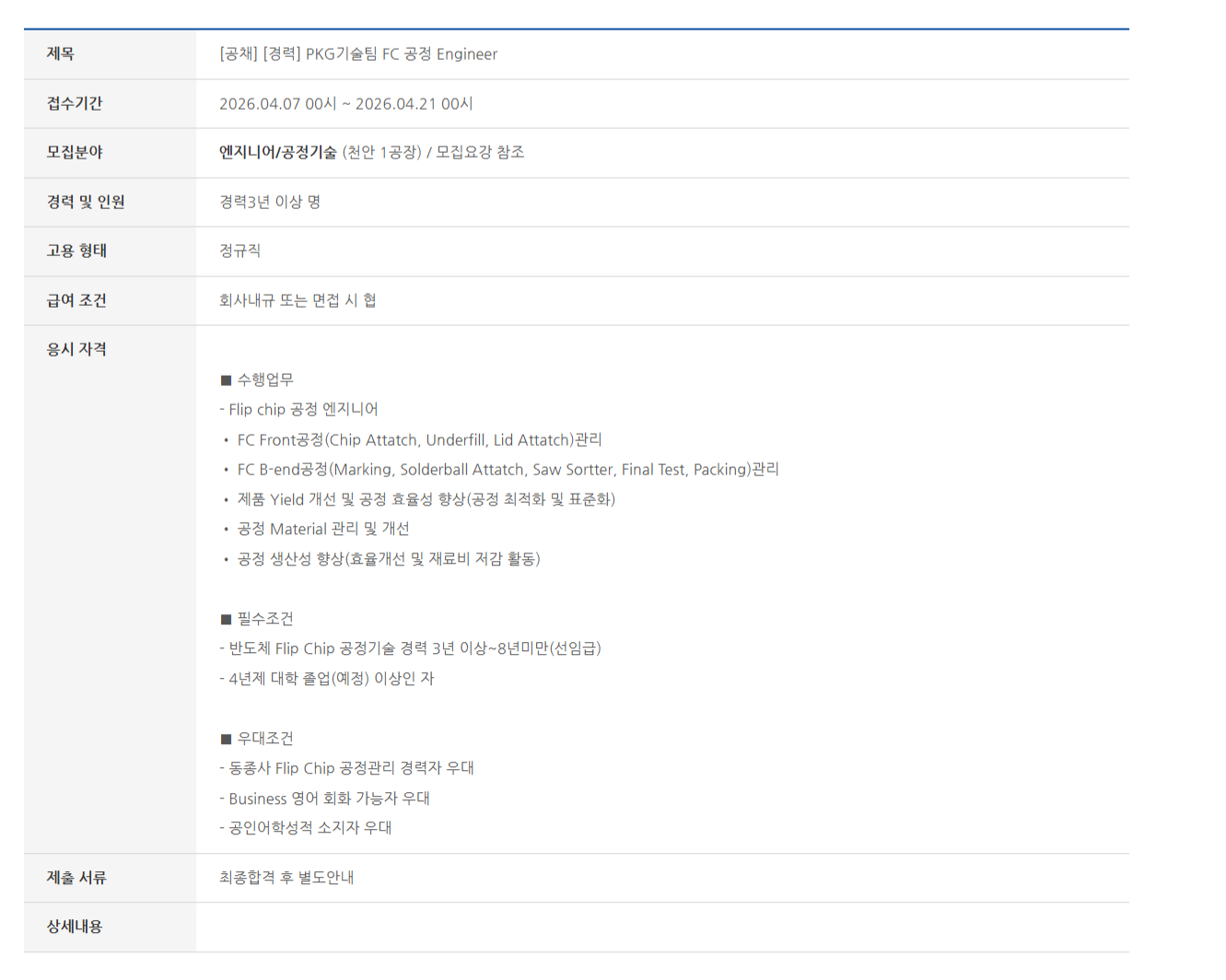 - ¹ÝµµÃ¼ Flip Chip °øÁ¤±â¼ú °æ·Â 3³â ÀÌ»ó~8³â¹Ì¸¸(¼±ÀÓ±Þ)