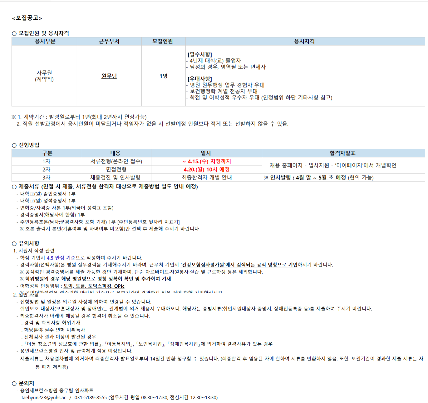 [¿ëÀÎ] ¿ø¹«ÆÀ »ç¹«¿ø(°è¾àÁ÷) ½Å±Ôä¿ë 26.4-2