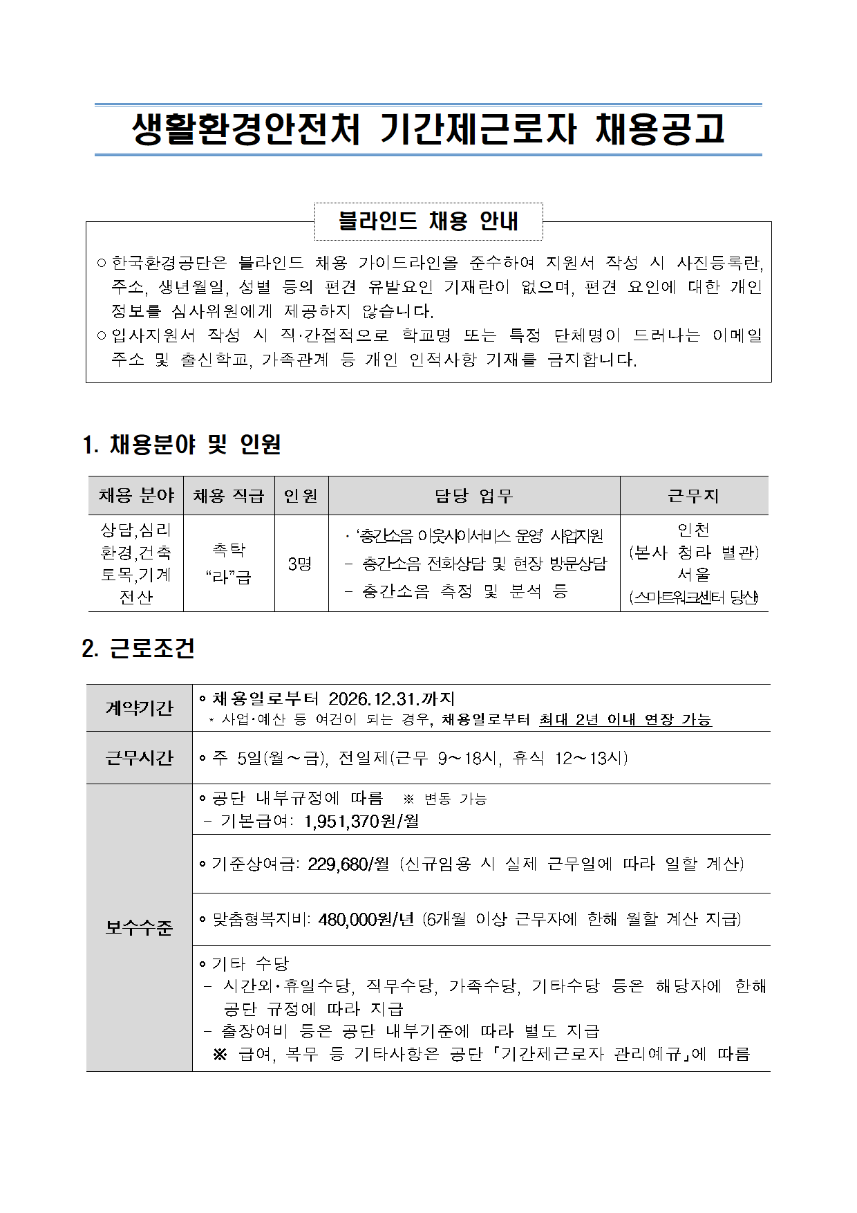 Çѱ¹È¯°æ°ø´Ü ÈÇоÈÀüÁö¿ø´Ü »ýȰȯ°æ¾ÈÀüó ÁÖ°Åȯ°æ°ü¸®ºÎ ±â°£Á¦±Ù·ÎÀÚ(ÃËŹ¶ó±Þ) ä¿ë °ø°í