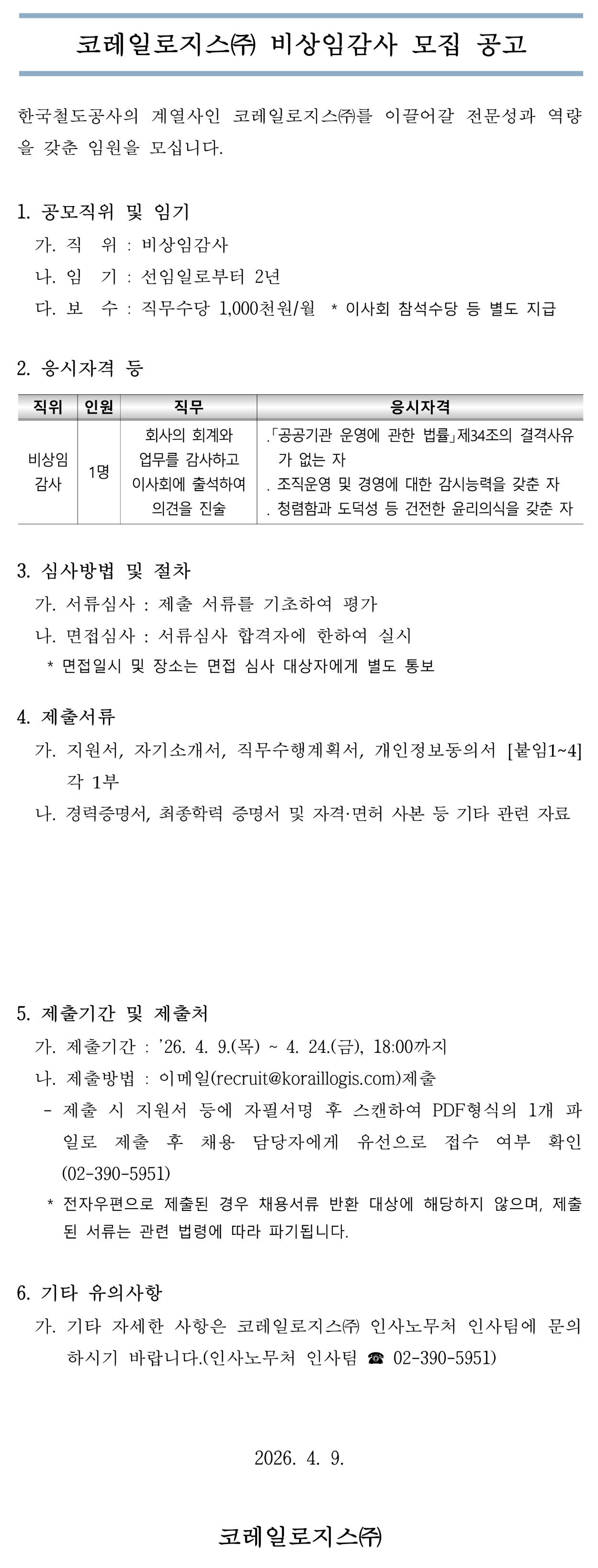 ÄÚ·¹ÀÏ·ÎÁö½º(ÁÖ) ºñ»óÀÓ°¨»ç ¸ðÁý °ø°í