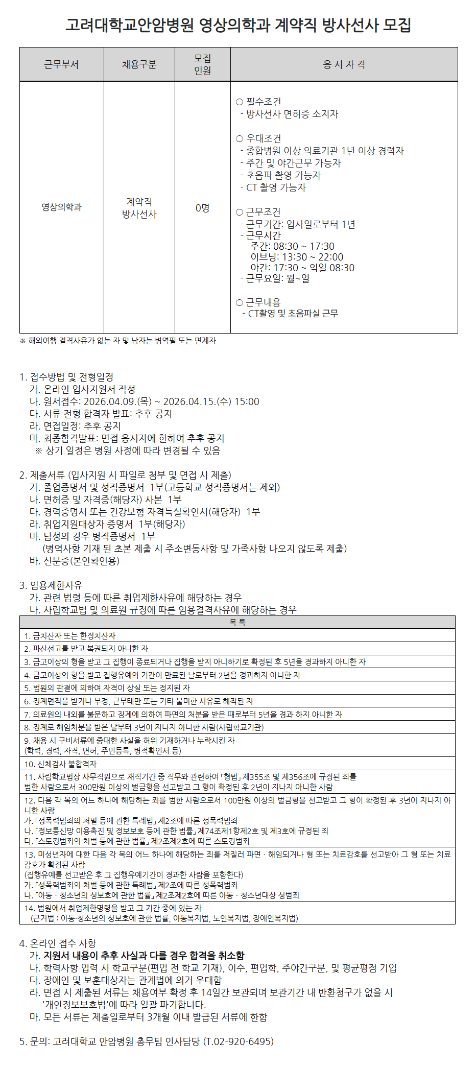 [¾È¾Ïº´¿ø 26-26]¿µ»óÀÇÇаú °è¾àÁ÷ ¹æ»ç¼±»ç ¸ðÁý