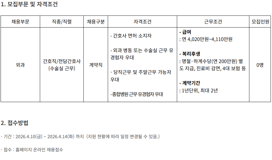 - Á¾ÇÕº´¿ø ±Ù¹« À¯°æÇèÀÚ ¿ì´ë