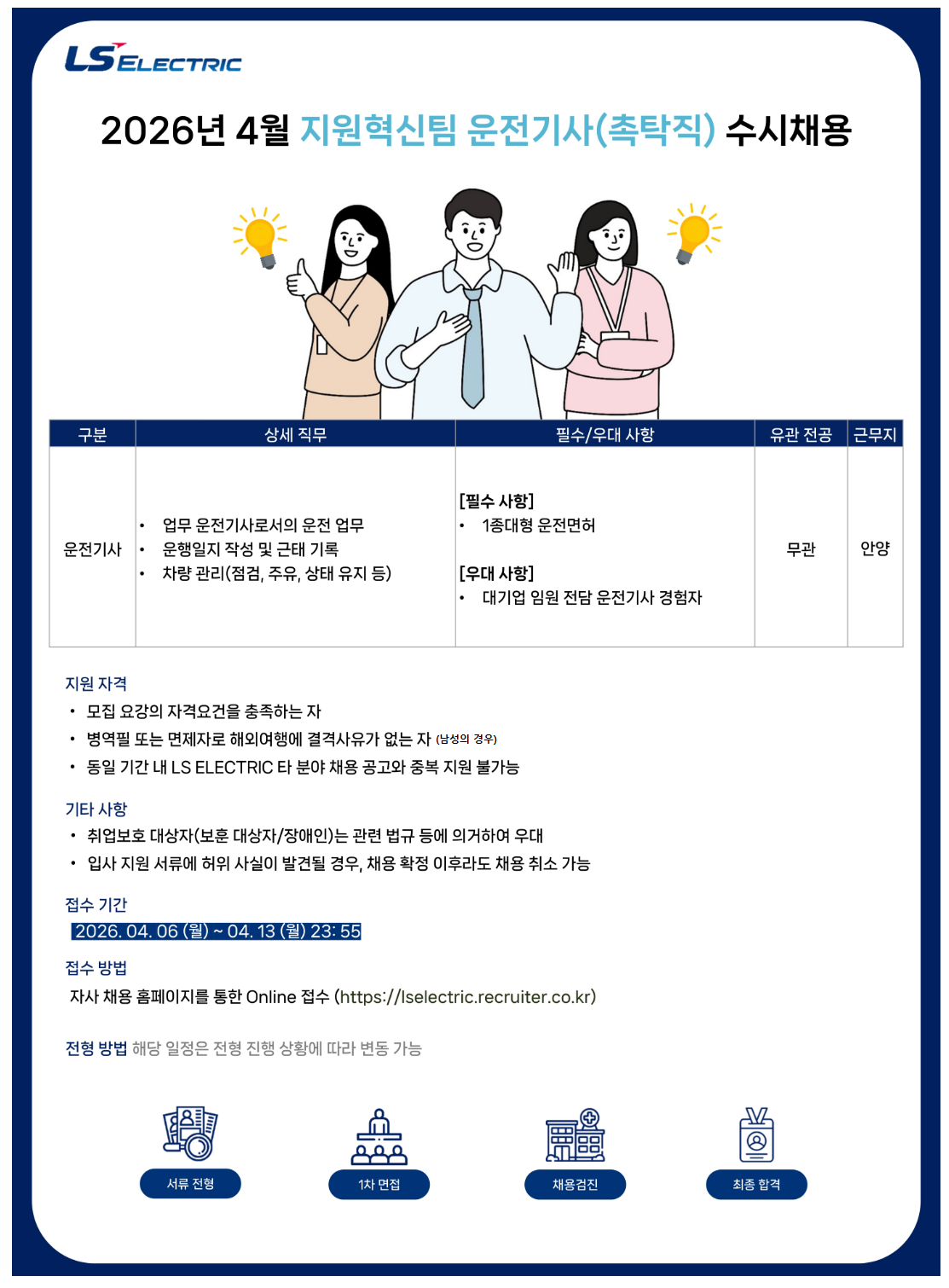 2026³â 4¿ù Áö¿øÇõ½ÅÆÀ ¿îÀü±â»ç(ÃËŹÁ÷) ¼ö½Ãä¿ë