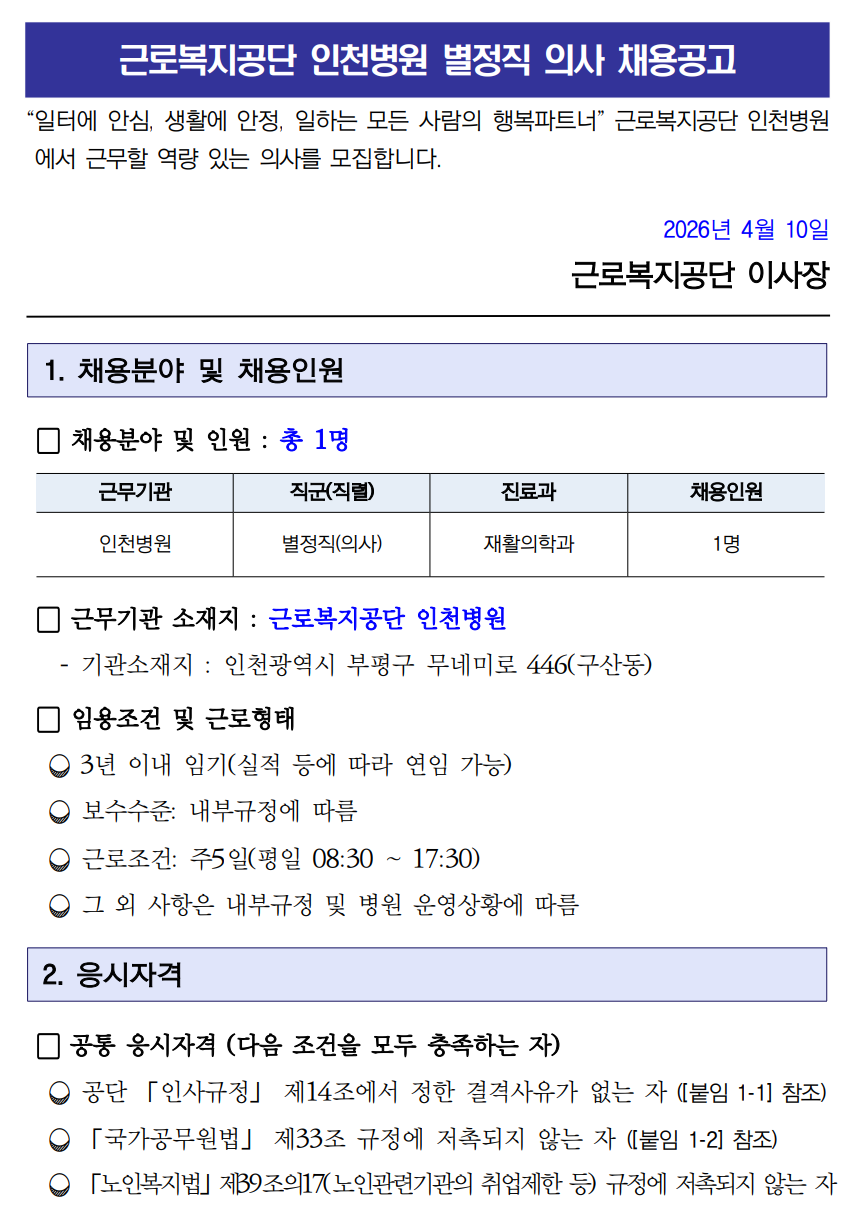 [ÀÎõº´¿ø] º°Á¤Á÷(ÀÇ»ç) ÀçȰÀÇÇаú ä¿ë°ø°í