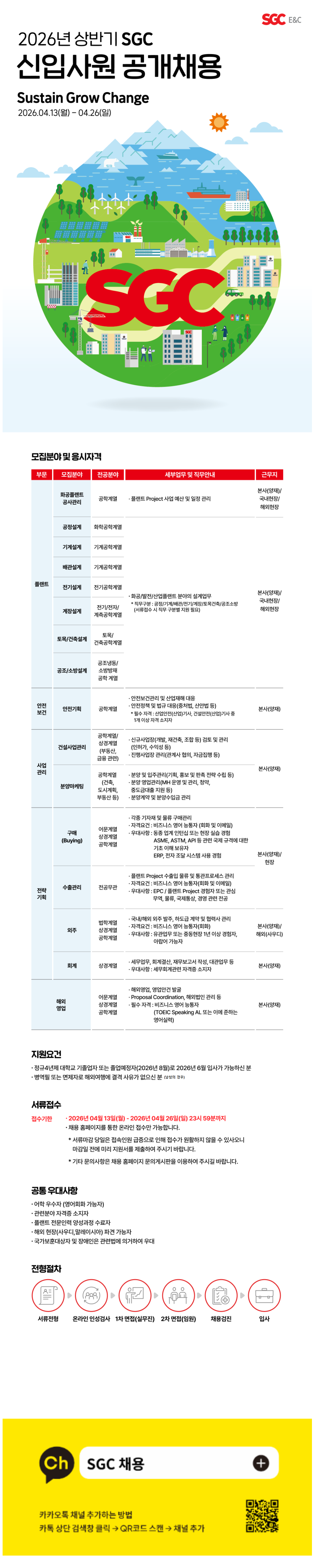 [SGC E&C] 2026³â »ó¹Ý±â SGC ½ÅÀÔ»ç¿ø °ø°³Ã¤¿ë
