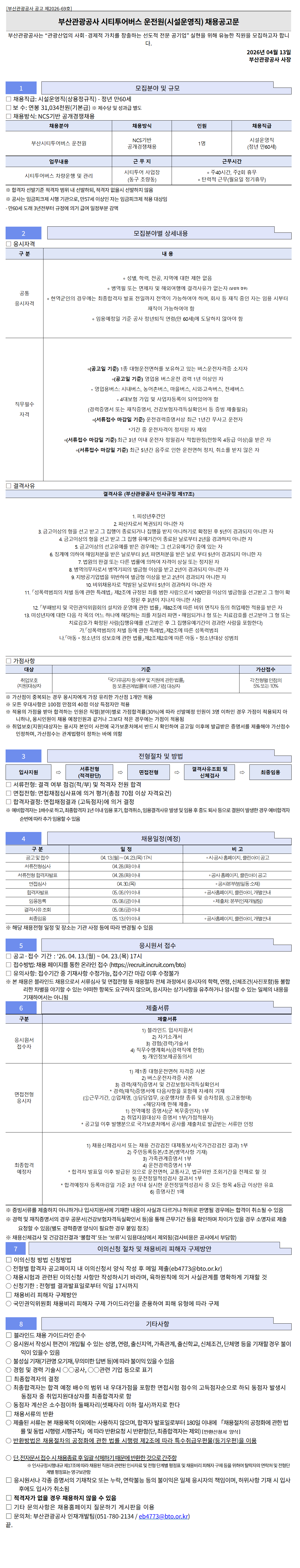 ºÎ»ê°ü±¤°ø»ç ½ÃƼÅõ¾î¹ö½º ¿îÀü¿ø(½Ã¼³¿î¿µÁ÷) ä¿ë°ø°í¹®