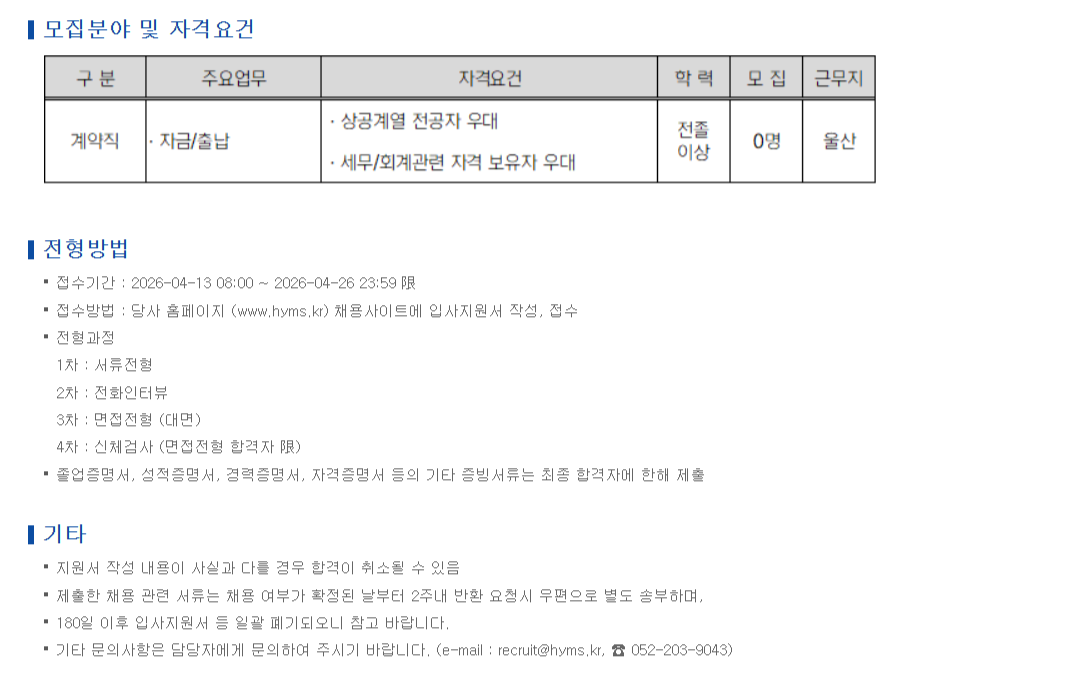 2026³â Ãâ³³ °è¾àÁ÷ Á÷¿ø ä¿ë ¾È³» (¿ï»ê)
