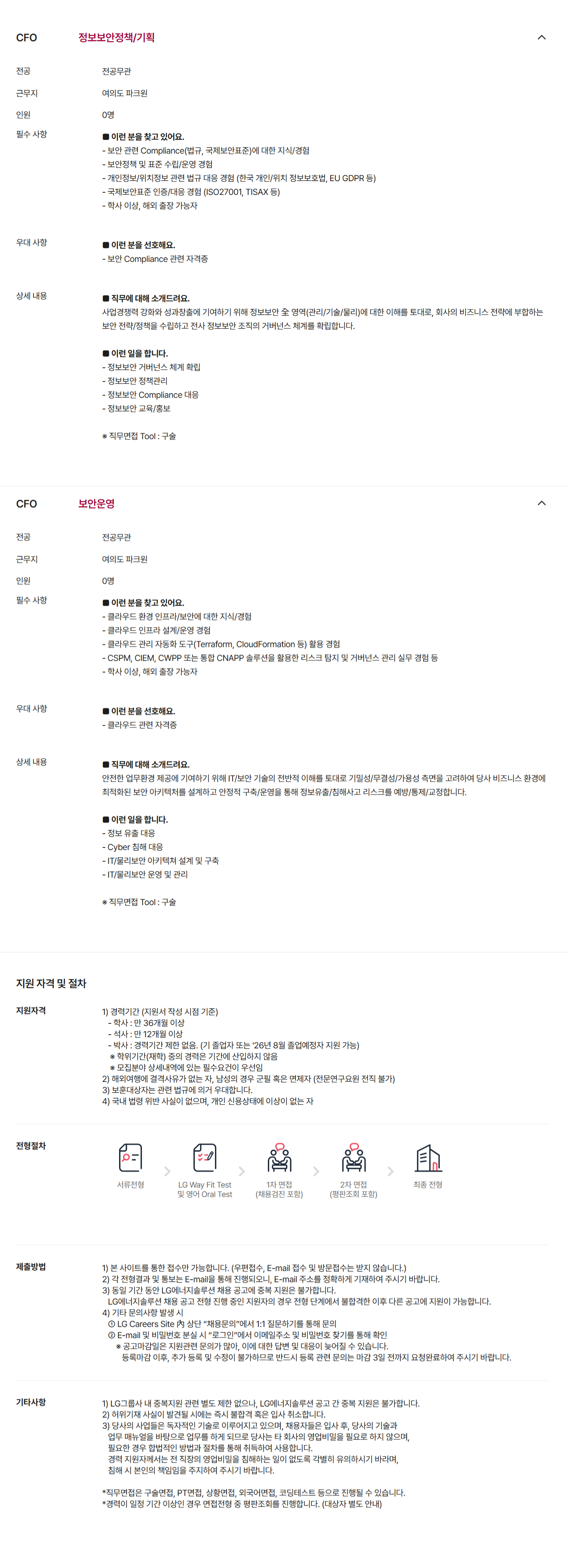 [CFO] Á¤º¸º¸¾ÈÁ¤Ã¥±âȹ/º¸¾È¿î¿µ °æ·Â ¸ðÁý