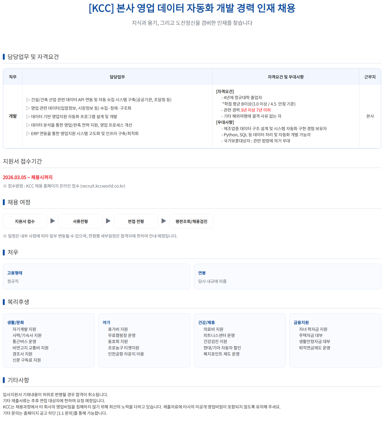 ¡Ø Á¢¼ö¹æ¹ý : KCC ä¿ë ȨÆäÀÌÁö ¿Â¶óÀÎ Á¢¼ö (recruit.kccworld.co.kr)