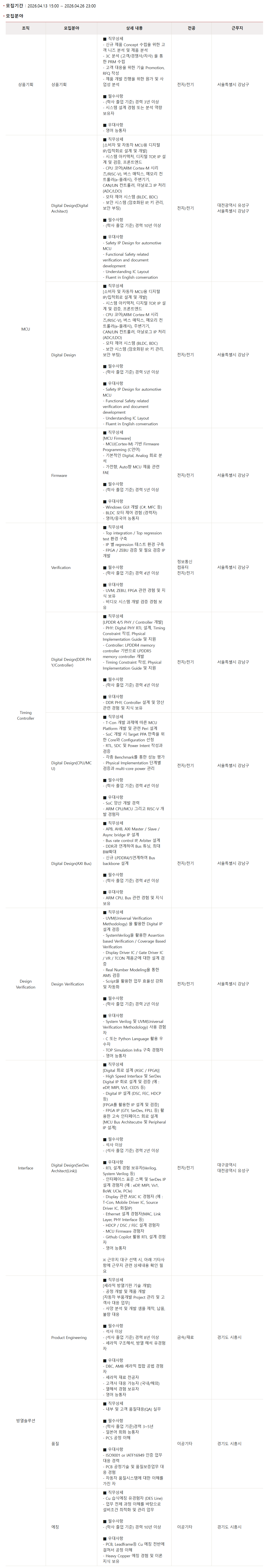 - Display °ü·Ã ASIC IC °æÇèÀÚ (¿¹ : T-Con, Mobile Driver IC, Source Driver IC, ÈÁúIP)