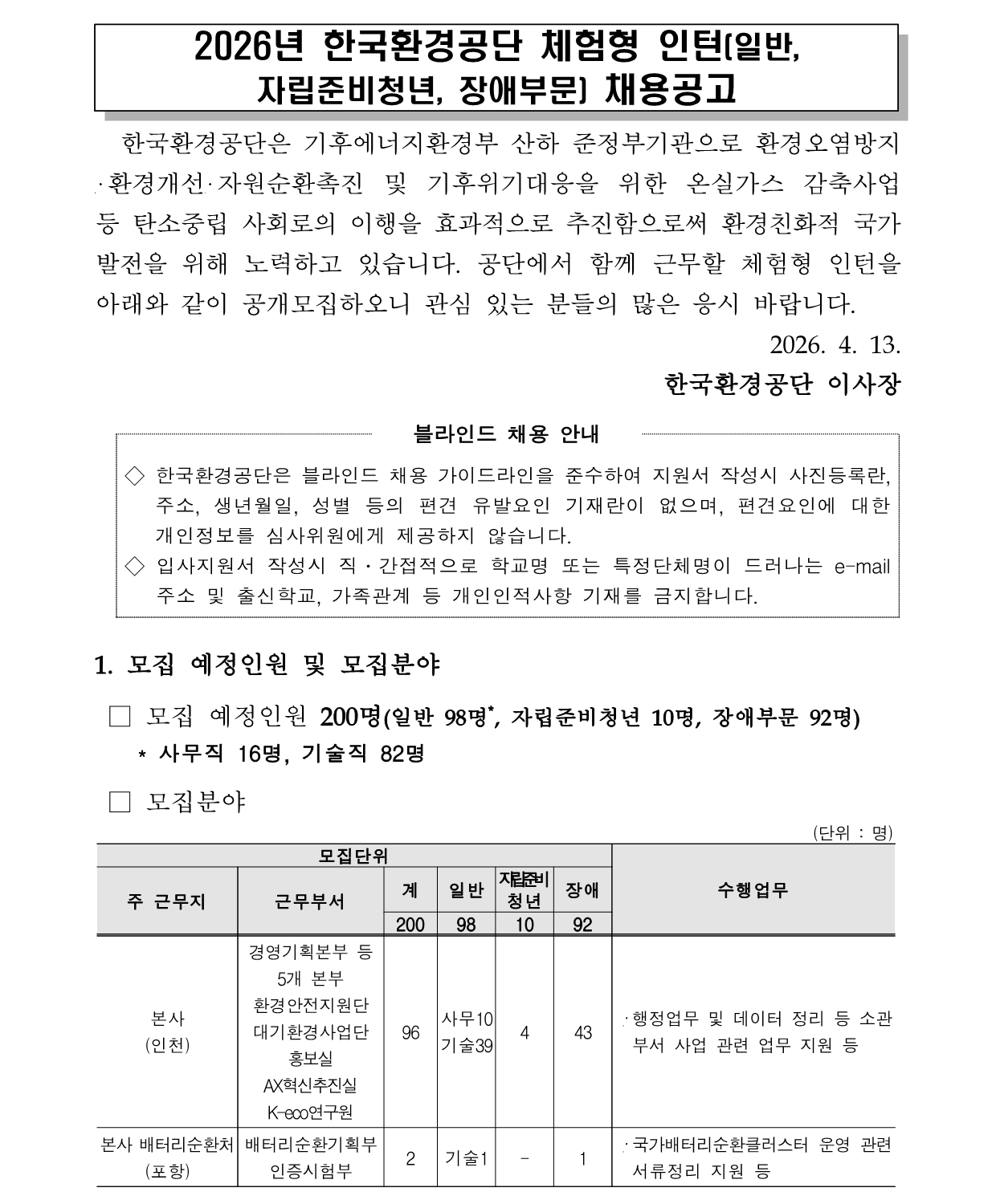 2026³âµµ Çѱ¹È¯°æ°ø´Ü üÇèÇü ÀÎÅÏ(ÀϹÝ, ÀÚ¸³Áغñû³â, Àå¾ÖºÎ¹®) ä¿ë°ø°í