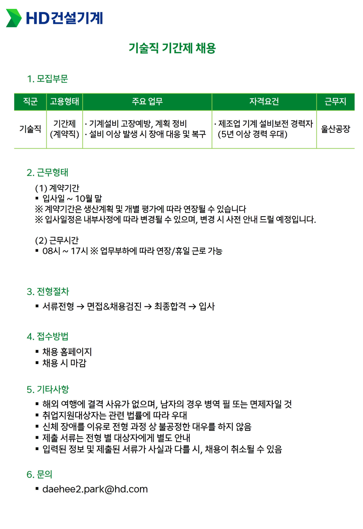 [HD°Ç¼³±â°è] ±â¼úÁ÷ ±â°£Á¦ ä¿ë (¿ï»ê°øÀå ¼³ºñº¸Àü, ä¿ë ½Ã ¸¶°¨)