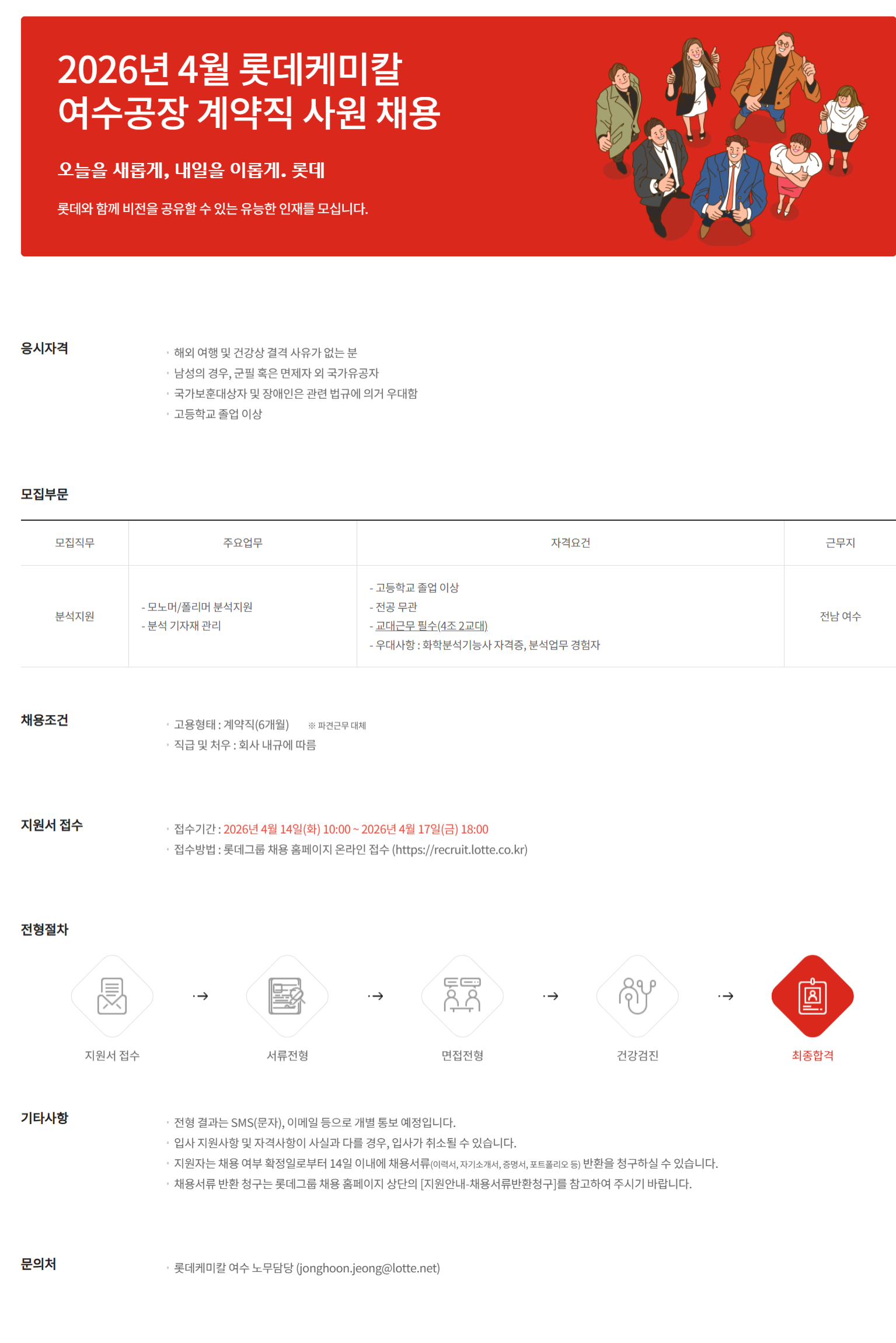 2026³â 4¿ù ·Ôµ¥ÄɹÌÄ® ¿©¼ö°øÀå °è¾àÁ÷ »ç¿ø ä¿ë