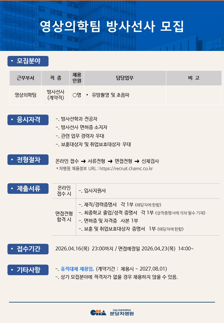 [ºÐ´çÂ÷º´¿ø] ¿µ»óÀÇÇÐÆÀ ¹æ»ç¼±»ç ¸ðÁý