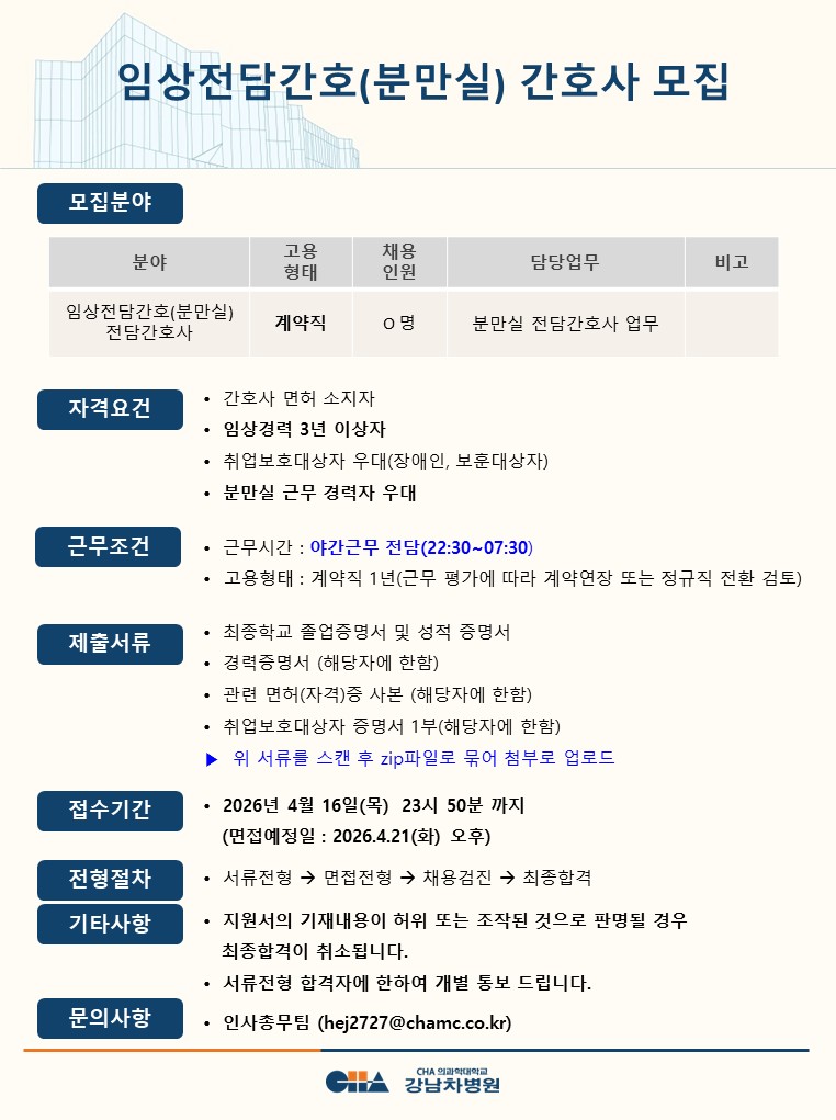 [°³²Â÷º´¿ø] °£È£±¹ ÀÓ»óÀü´ã°£È£(ºÐ¸¸½Ç ¾ß°£Àü´ã) °£È£»ç ¸ðÁý