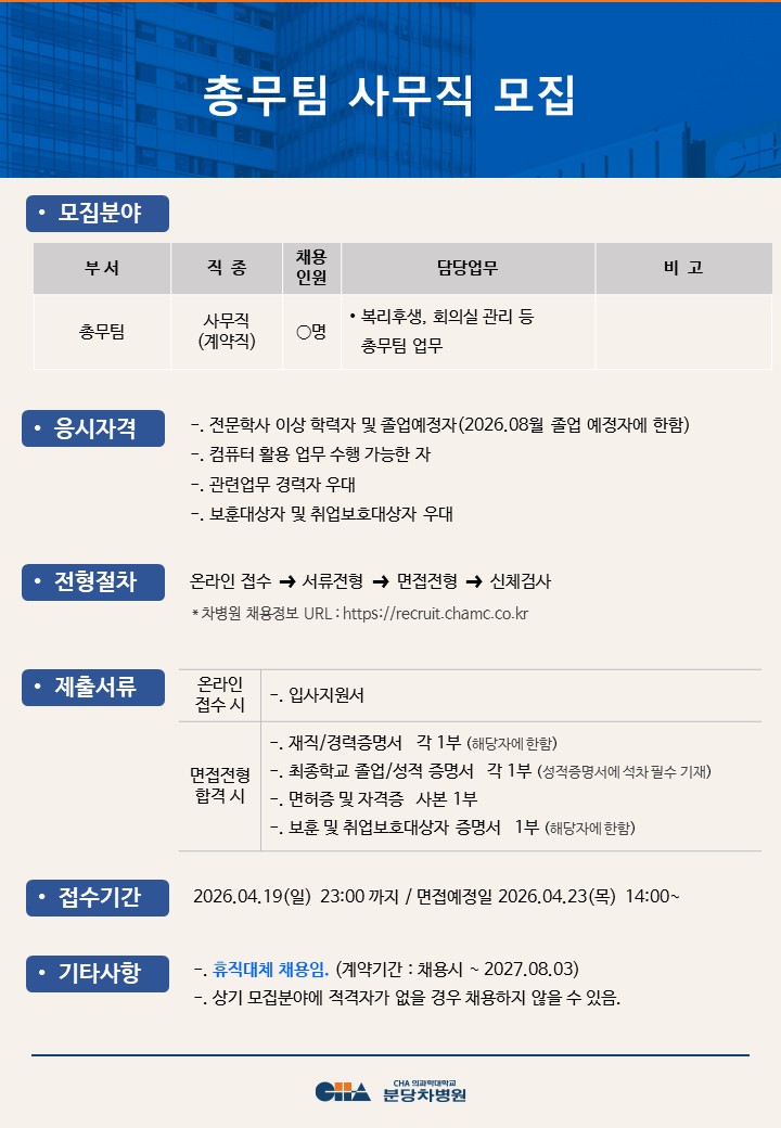 [ºÐ´çÂ÷º´¿ø] Ãѹ«ÆÀ »ç¹«Á÷ ¸ðÁý