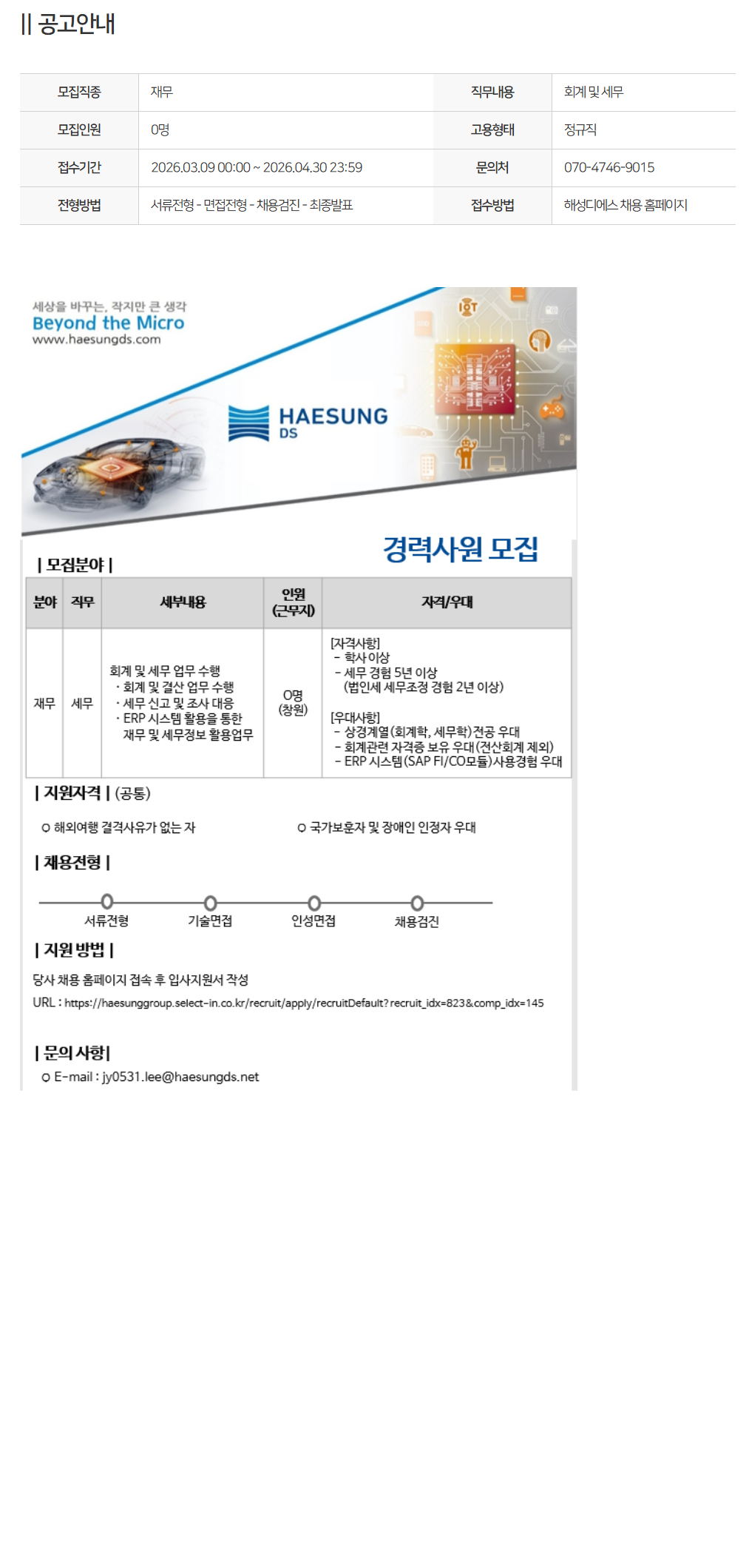 || °ø°í¾È³» ¸ðÁýÁ÷Á¾ À繫 Á÷¹«³»¿ë ȸ°è ¹× ¼¼¹« ¸ðÁýÀοø 0¸í °í¿ëÇüÅ Á¤±ÔÁ÷ Á¢¼ö±â°£ 2026.03.09 00:00 ~ 2026.04.30 23:59 ¹®ÀÇó 070-4746-9015 ÀüÇü¹æ¹ý ¼·ùÀüÇü - ¸éÁ¢ÀüÇü - ä¿ë°ËÁø - ÃÖÁ¾¹ßÇ¥ Á¢¼ö¹æ¹ý ÇØ¼ºµð¿¡½º ä¿ë ȨÆäÀÌÁö