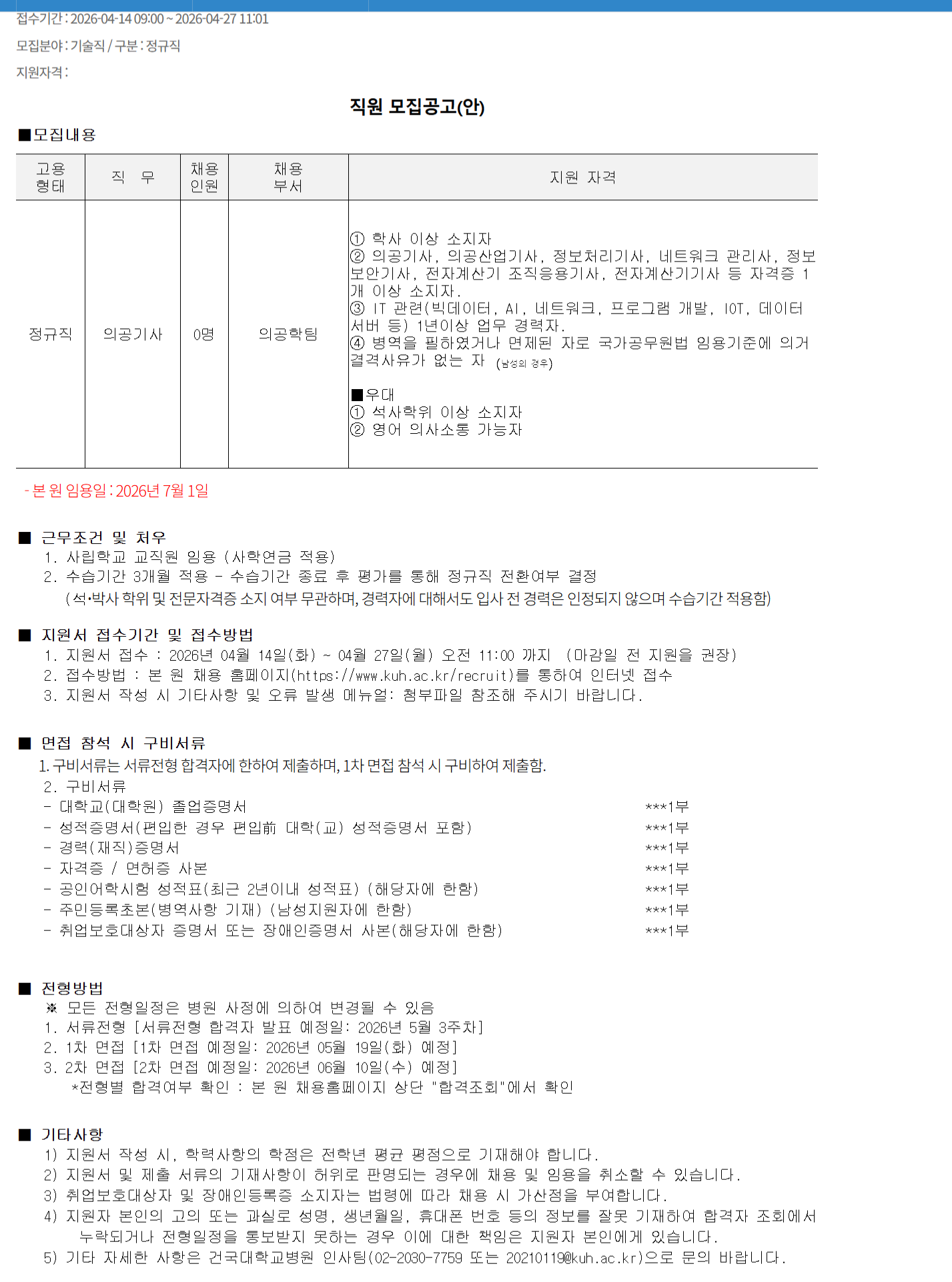 [Á¤±ÔÁ÷] 2026³â ½ÅÀÔ Àǰø±â»ç ä¿ë