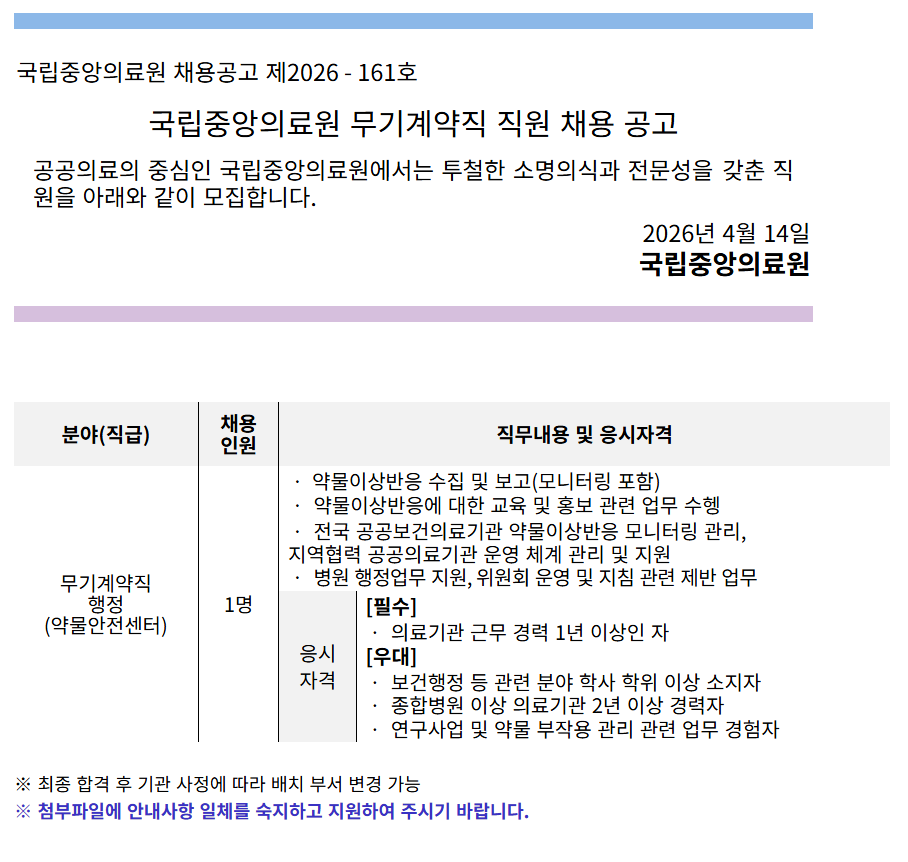 ±¹¸³Áß¾ÓÀÇ·á¿ø ä¿ë°ø°í Á¦2026 - 161È£