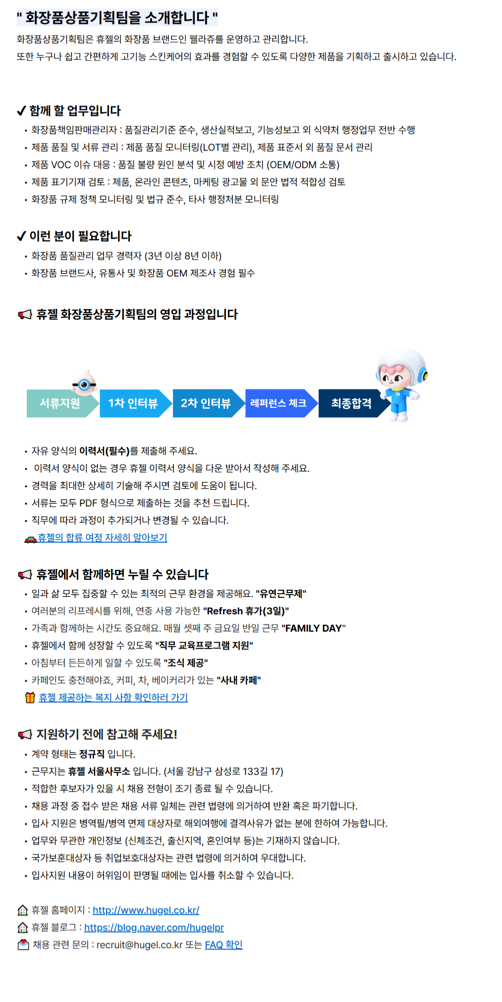[ÈÀåǰ»óǰ±âȹÆÀ] ÈÀåǰ ǰÁú°ü¸® °æ·Â