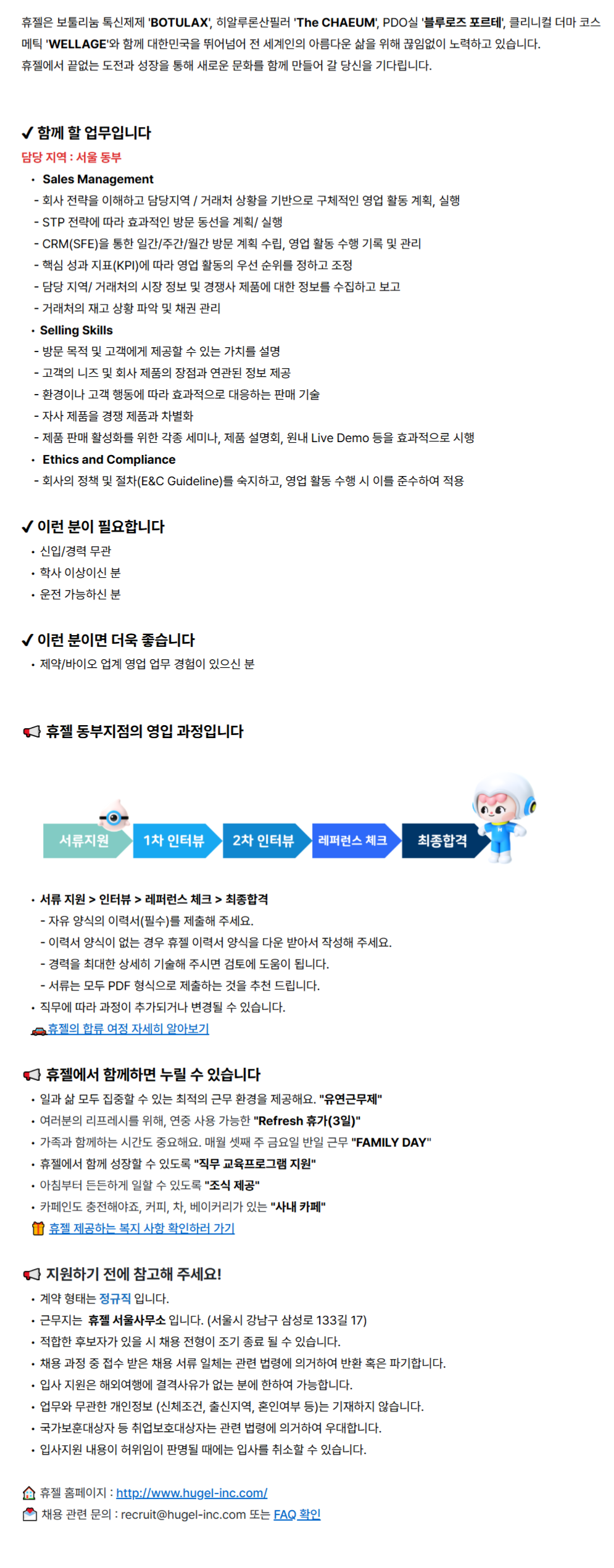 ✔ ÇÔ²² ​ÇÒ ​¾÷¹«ÀÔ´Ï´Ù ´ã´ç Áö¿ª ​: ¼­¿ï ​µ¿ºÎ ​Sales Management - ȸ»ç ​Àü·«À» ÀÌÇØÇϰí ​´ã´çÁö¿ª / °Å·¡Ã³ »óȲÀ» ±â¹ÝÀ¸·Î ±¸Ã¼ÀûÀÎ ¿µ¾÷ Ȱµ¿ °èȹ, ½ÇÇà - STP Àü·«¿¡ µû¶ó È¿°úÀûÀÎ ¹æ¹® µ¿¼±À» °èȹ/ ½ÇÇà - CRM(SFE)À» ÅëÇÑ Àϰ£/ÁÖ°£/¿ù°£ ¹æ¹® °èȹ ¼ö¸³, ¿µ¾÷ Ȱµ¿ ¼öÇà ±â·Ï ¹× °ü¸® - ÇÙ½É ¼º°ú ÁöÇ¥(KPI)¿¡ µû¶ó ¿µ¾÷ Ȱµ¿ÀÇ ¿ì¼± ¼øÀ§¸¦ Á¤Çϰí Á¶Á¤ - ´ã´ç Áö¿ª/ °Å·¡Ã³ÀÇ ½ÃÀå Á¤º¸ ¹× °æÀï»ç Á¦Ç°¿¡ ´ëÇÑ Á¤º¸¸¦ ¼öÁýÇÏ°í º¸°í - °Å·¡Ã³ÀÇ Àç°í »óȲ ÆÄ¾Ç ¹× ä±Ç °ü¸® Selling Skills - ¹æ¹® ¸ñÀû ¹× °í°´¿¡°Ô Á¦°øÇÒ ¼ö ÀÖ´Â °¡Ä¡¸¦ ¼³¸í - °í°´ÀÇ ´ÏÁî ¹× È¸»ç Á¦Ç°ÀÇ ÀåÁ¡°ú ¿¬°üµÈ Á¤º¸ Á¦°ø - ȯ°æÀ̳ª °í°´ Çൿ¿¡ µû¶ó È¿°úÀûÀ¸·Î ´ëÀÀÇÏ´Â ÆÇ¸Å ±â¼ú - ÀÚ»ç Á¦Ç°À» °æÀï Á¦Ç°°ú Â÷º°È­ - Á¦Ç° ÆÇ¸Å Ȱ¼ºÈ­¸¦ À§ÇÑ °¢Á¾ ¼¼¹Ì³ª, Á¦Ç° ¼³¸íȸ, ¿ø³» Live Demo µîÀ» È¿°úÀûÀ¸·Î ½ÃÇà Ethics and Compliance - ȸ»çÀÇ Á¤Ã¥ ¹× ÀýÂ÷(E&C Guideline)¸¦ ¼÷ÁöÇϰí, ¿µ¾÷ Ȱµ¿ ¼öÇà ½Ã À̸¦ ÁؼöÇÏ¿© Àû¿ë