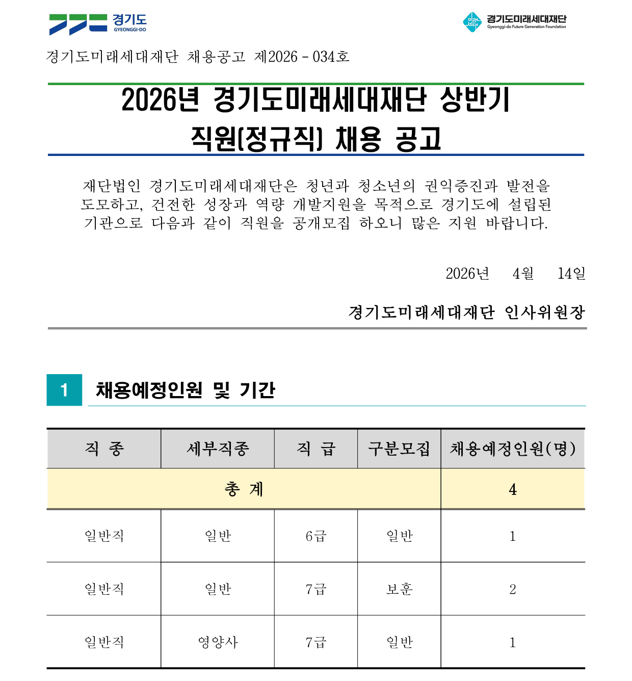 2026³â °æ±âµµ¹Ì·¡¼¼´ëÀç´Ü »ó¹Ý±â Á÷¿ø(Á¤±ÔÁ÷) ä¿ë °ø°í