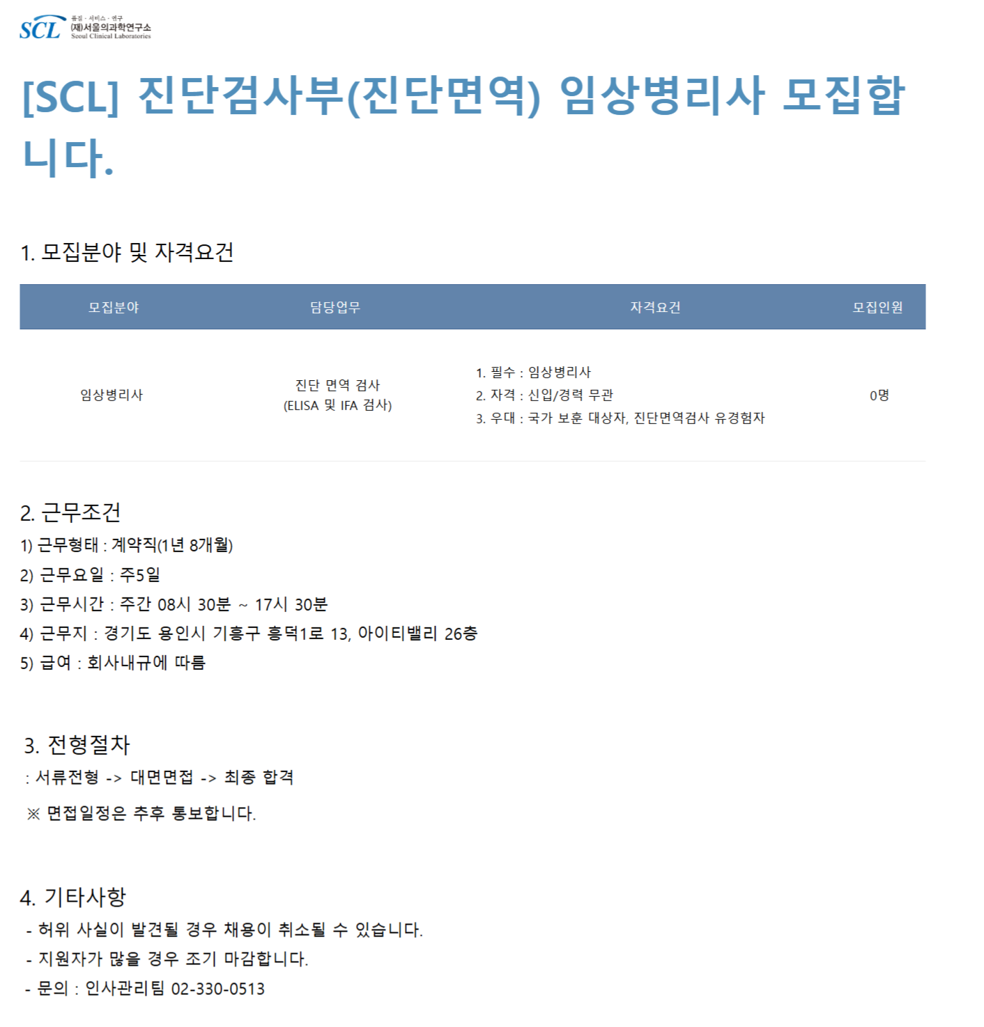 [SCL] Áø´Ü¸é¿ªÆÀ ÀÓ»óº´¸®»ç ¸ðÁýÇÕ´Ï´Ù.