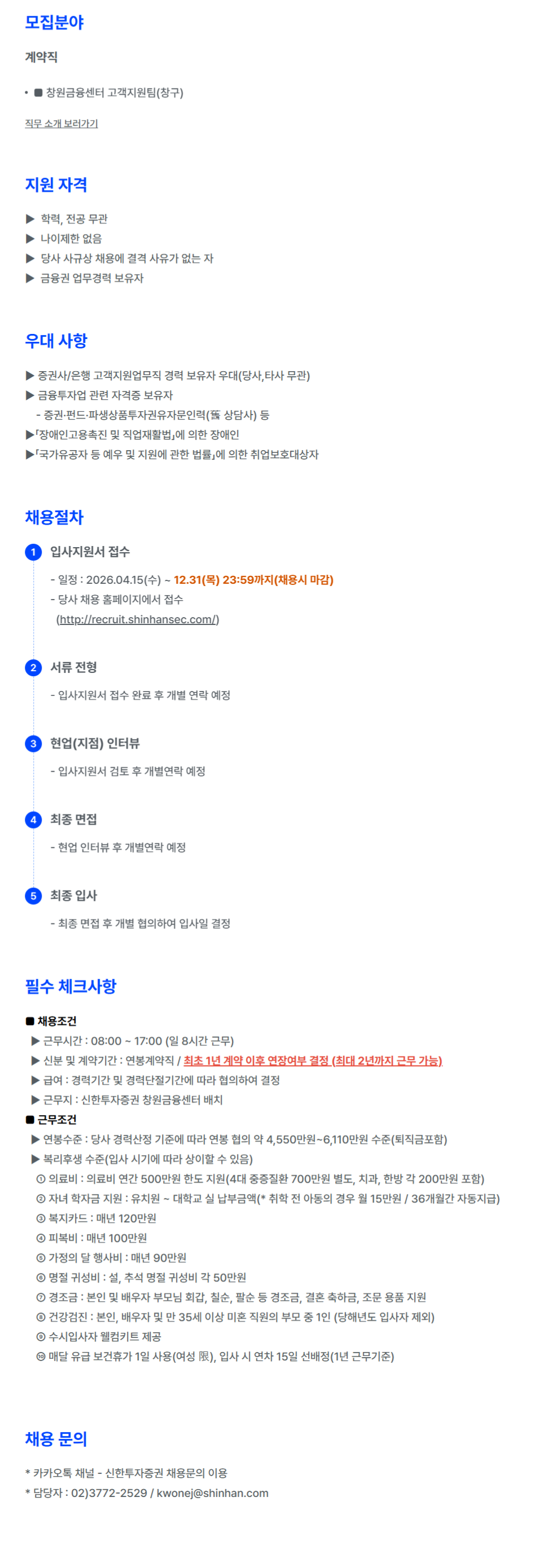 Áö¿ø ÀÚ°Ý ¢º ÇзÂ, Àü°ø ¹«°ü ¢º ³ªÀÌÁ¦ÇÑ ¾øÀ½ ¢º ´ç»ç »ç±Ô»ó ä¿ë¿¡ °á°Ý »çÀ¯°¡ ¾ø´Â ÀÚ ¢º ±ÝÀ¶±Ç ¾÷¹«°æ·Â º¸À¯ÀÚ ¿ì´ë »çÇ× ¢º Áõ±Ç»ç/ÀºÇà °í°´Áö¿ø¾÷¹«Á÷ °æ·Â º¸À¯ÀÚ ¿ì´ë(´ç»ç,Ÿ»ç ¹«°ü) ¢º ±ÝÀ¶ÅõÀÚ¾÷ °ü·Ã ÀÚ°ÝÁõ º¸À¯ÀÚ - Áõ±Ç¡¤ÆÝµå¡¤ÆÄ»ý»óǰÅõÀÚ±ÇÀ¯ÀÚ¹®ÀηÂ(ÏÁ »ó´ã»ç) µî ¢º¡¸Àå¾ÖÀΰí¿ëÃËÁø ¹× Á÷¾÷ÀçȰ¹ý¡¹¿¡ ÀÇÇÑ Àå¾ÖÀÎ ¢º¡¸±¹°¡À¯°øÀÚ µî ¿¹¿ì ¹× Áö¿ø¿¡ °üÇÑ ¹ý·ü¡¹¿¡ ÀÇÇÑ Ãë¾÷º¸È£´ë»óÀÚ