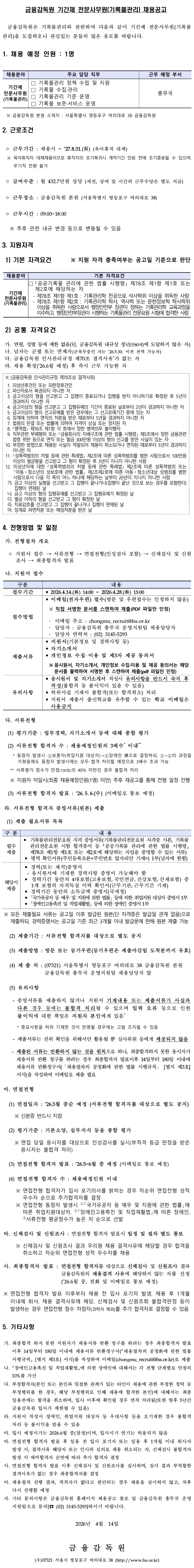 ÆÄ°ßÁ÷ÀÌ ¾Æ´ÔÀ» ¾Ë·Áµå¸³´Ï´Ù. ÇÕ°Ý ÈÄ Ã¤¿ë µÉ °æ¿ì °í¿ëÇüÅ´ [±ÝÀ¶°¨µ¶¿ø] ¼Ò¼ÓÀ¸·Î ±Ù¹«ÇÏ°Ô µË´Ï´Ù.