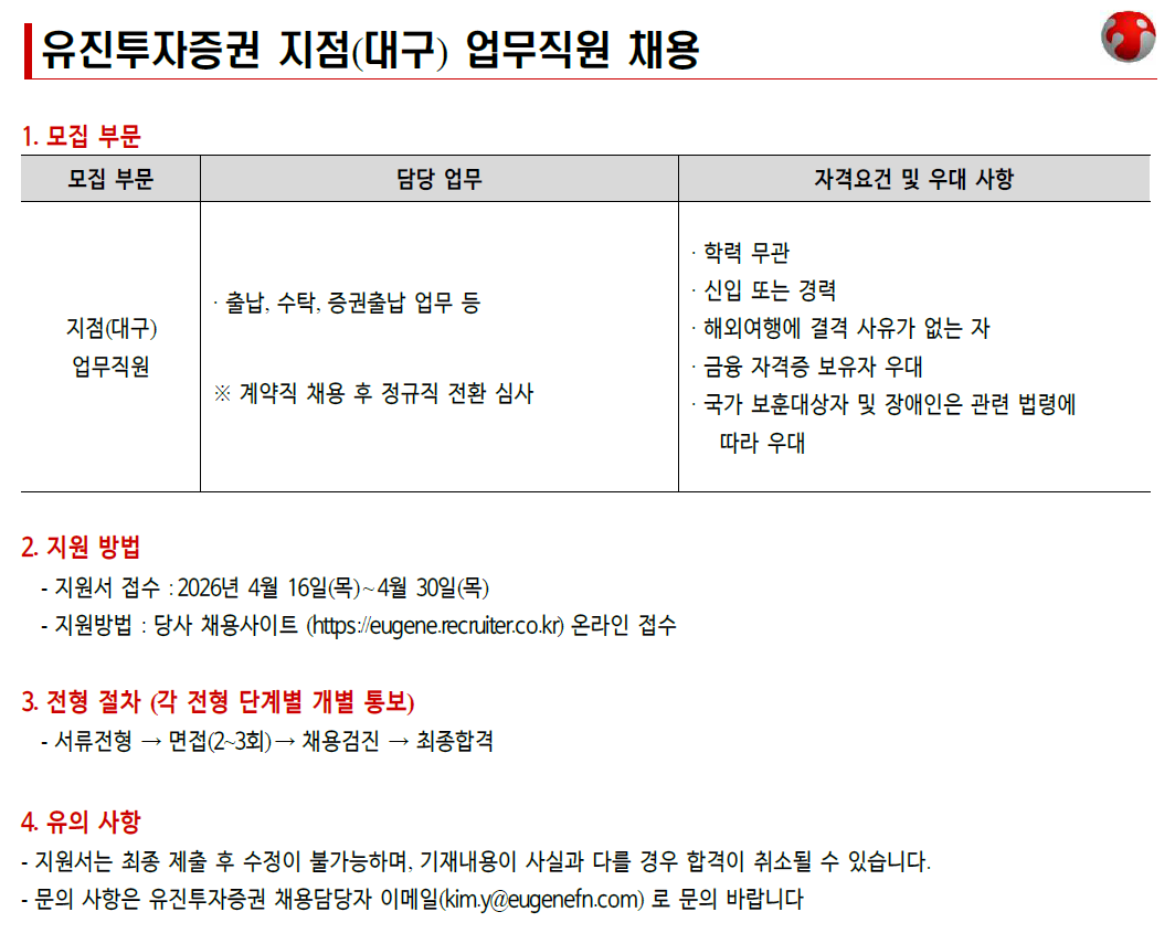 [À¯ÁøÅõÀÚÁõ±Ç] ÁöÁ¡(´ë±¸) ¾÷¹«Á÷¿ø ä¿ë