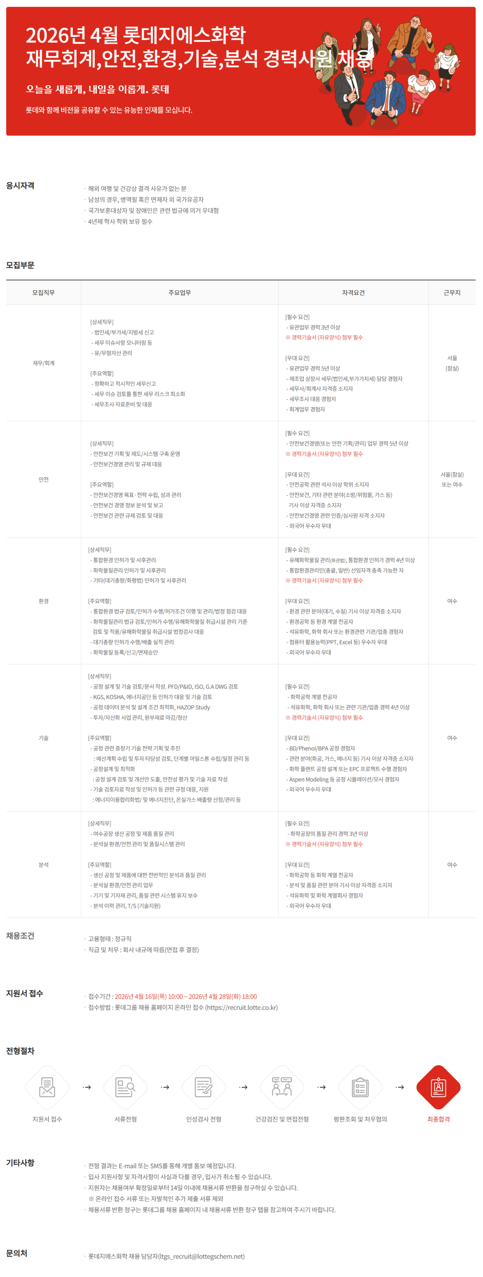 2026³â 4¿ù ·Ôµ¥Áö¿¡½ºÈÇÐ À繫ȸ°è,¾ÈÀü,ȯ°æ,±â¼ú,ºÐ¼® °æ·Â»ç¿ø ä¿ë
