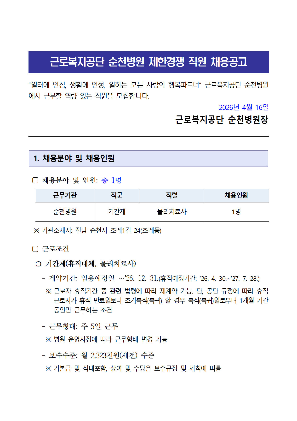 [¼øÃµº´¿ø] ±â°£Á¦(¹°¸®Ä¡·á»ç) ä¿ë °ø°í