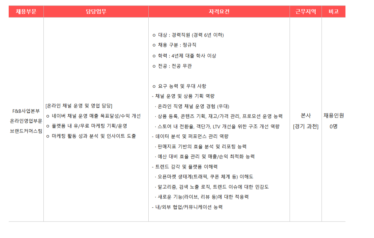 [±¤µ¿Á¦¾à] F&B»ç¾÷º»ºÎ ¿Â¶óÀοµ¾÷ºÎ¹® ³×À̹ö ä³Î ´ã´ç °æ·ÂÁ÷¿ø ¸ðÁý