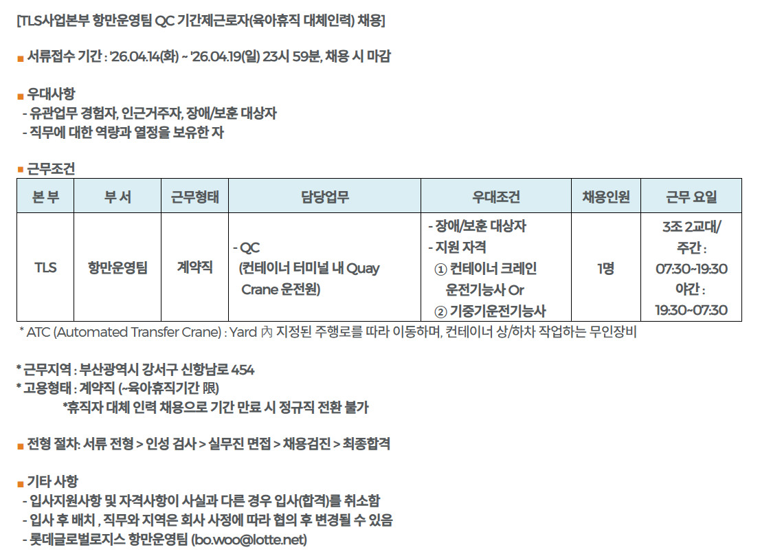 Ç׸¸¿î¿µÆÀ QC ±â°£Á¦±Ù·ÎÀÚ(À°¾ÆÈÞÁ÷ ´ëüÀηÂ) ä¿ë (~4/19, ±â°£¿¬Àå)