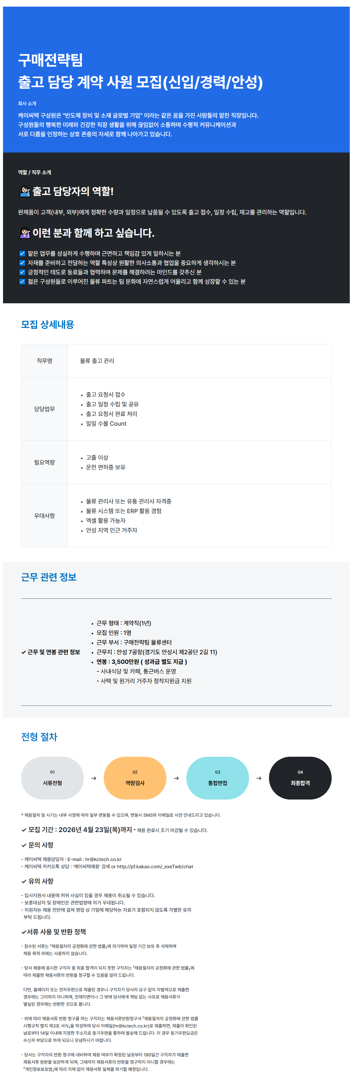 Ãâ°í ´ã´ç °è¾à »ç¿ø ¸ðÁý(½ÅÀÔ/°æ·Â/¾È¼º)