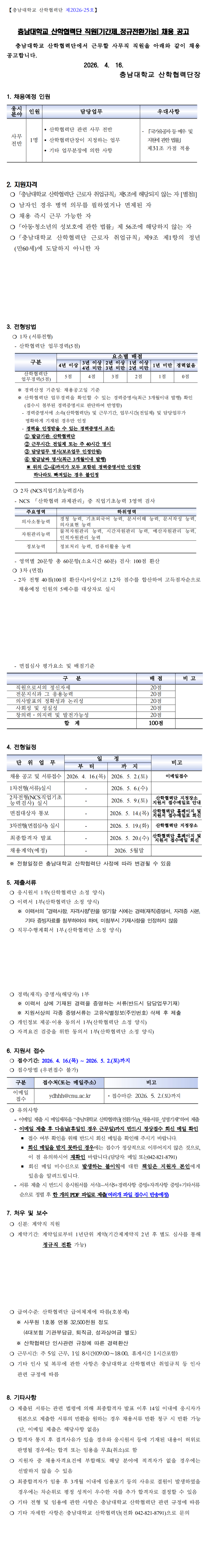 Ãæ³²´ëÇб³ »êÇÐÇù·Â´Ü Á÷¿ø(±â°£Á¦_Á¤±ÔÀüȯ°¡´É) ä¿ë °ø°í