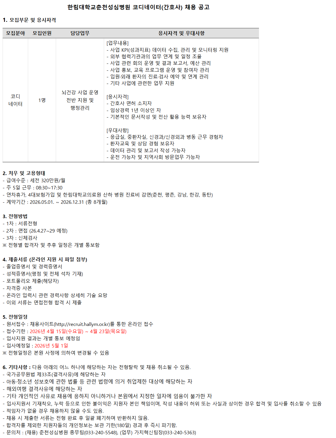 ÇѸ²´ëÇб³Ãáõ¼º½Éº´¿ø ÄÚµð³×ÀÌÅÍ(°£È£»ç) ä¿ë °ø°í