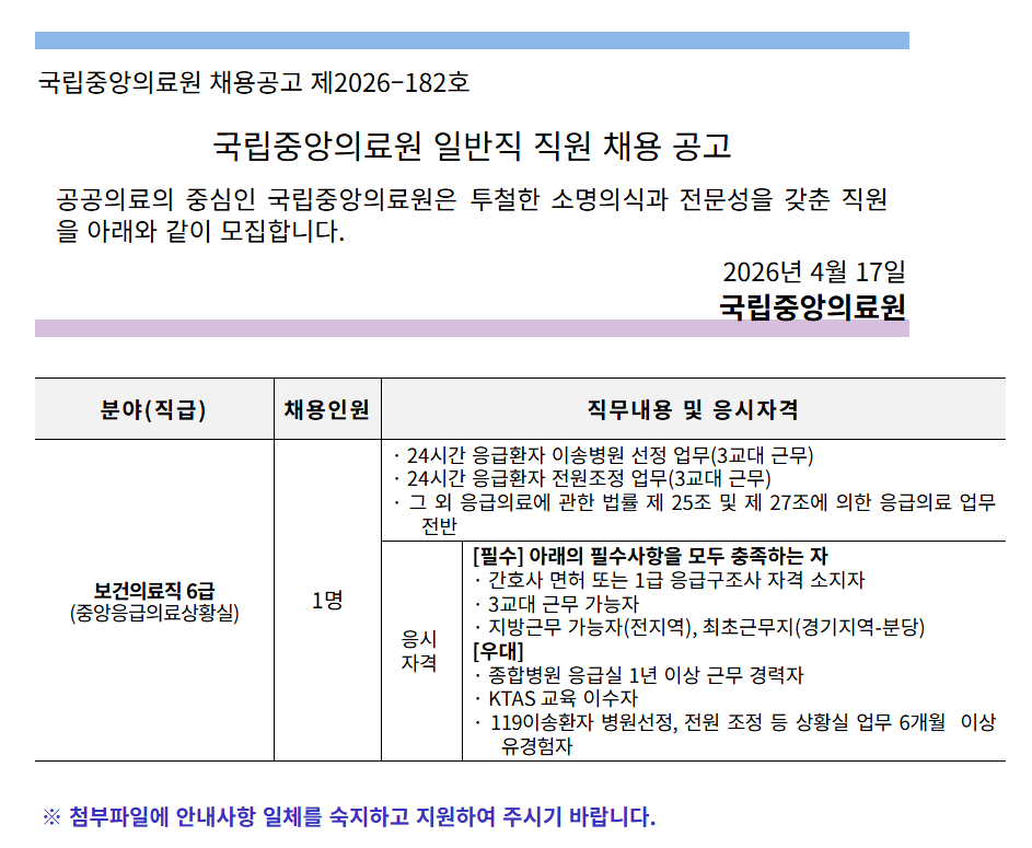 ±¹¸³Áß¾ÓÀÇ·á¿ø ä¿ë°ø°í Á¦2026–182È£