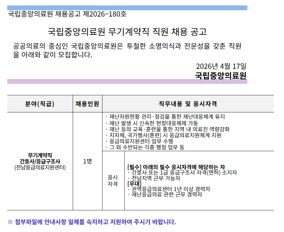 ±¹¸³Áß¾ÓÀÇ·á¿ø ä¿ë°ø°í Á¦2026–180È£