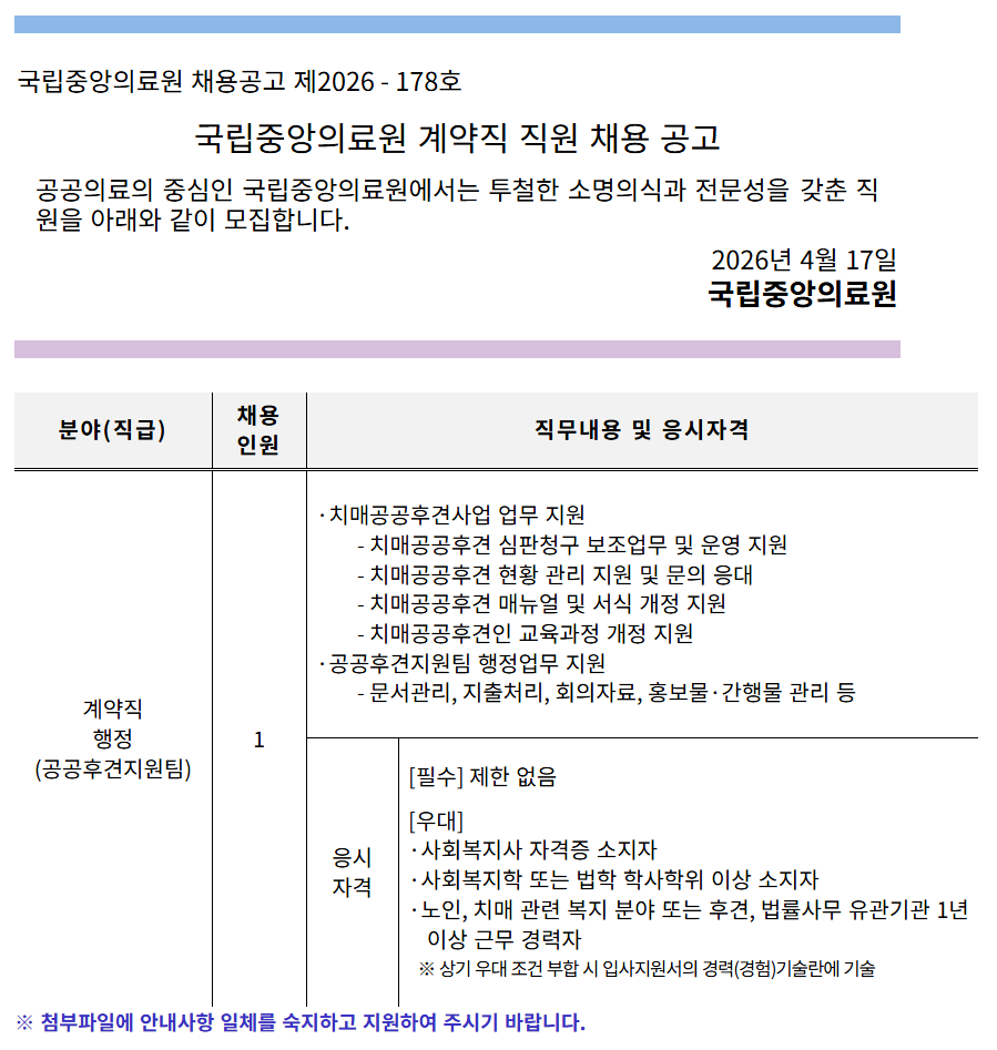±¹¸³Áß¾ÓÀÇ·á¿ø ä¿ë°ø°í Á¦2026 - 178È£