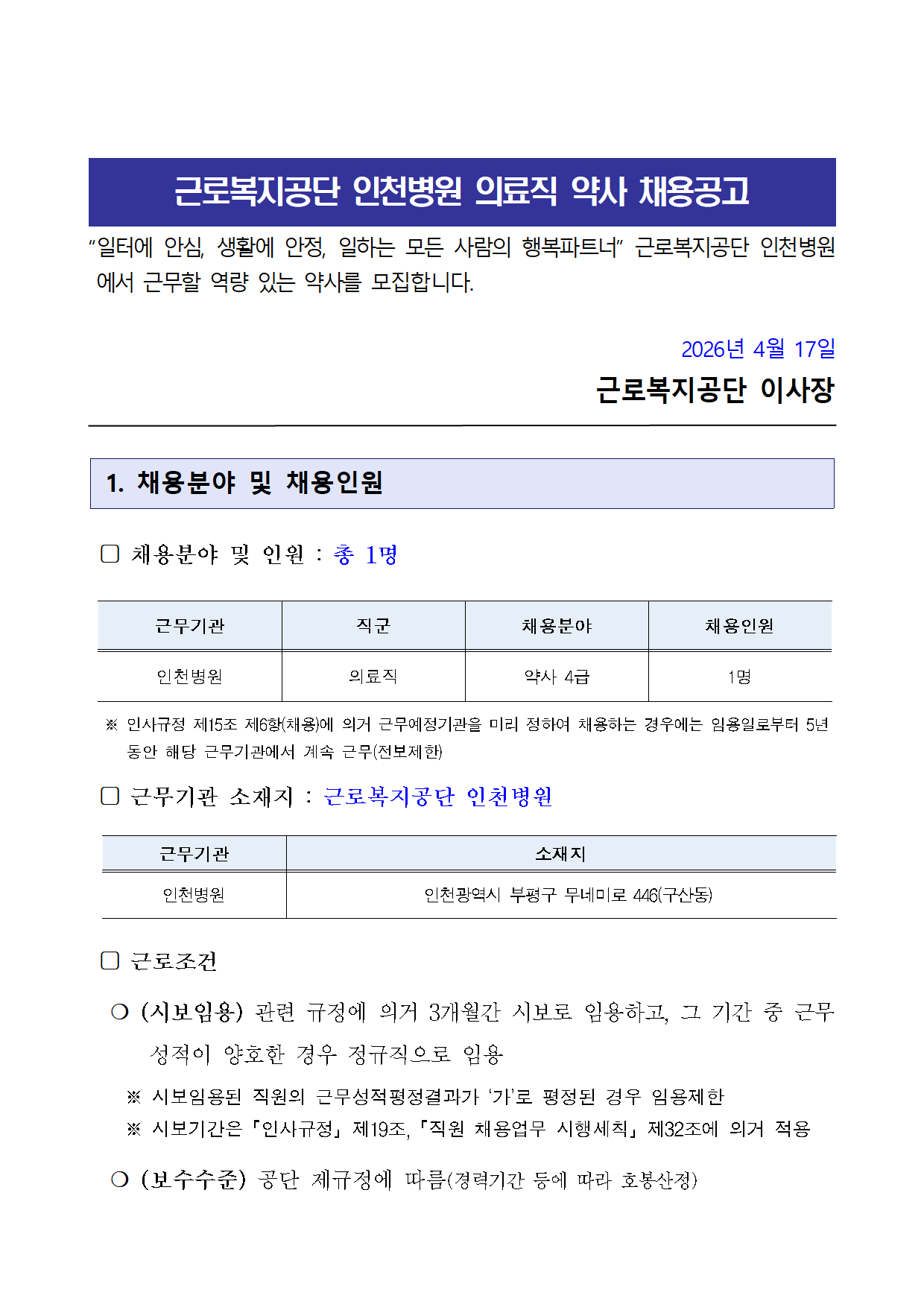 [ÀÎõº´¿ø] ÀÇ·áÁ÷(¾à»ç) 4±Þ ä¿ë°ø°í